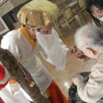 少し外の空気を吸いながら、テラスにおみくじを結び、ホールに戻られた後は温かい甘酒とお汁粉で体もぽかぽかに(^^)