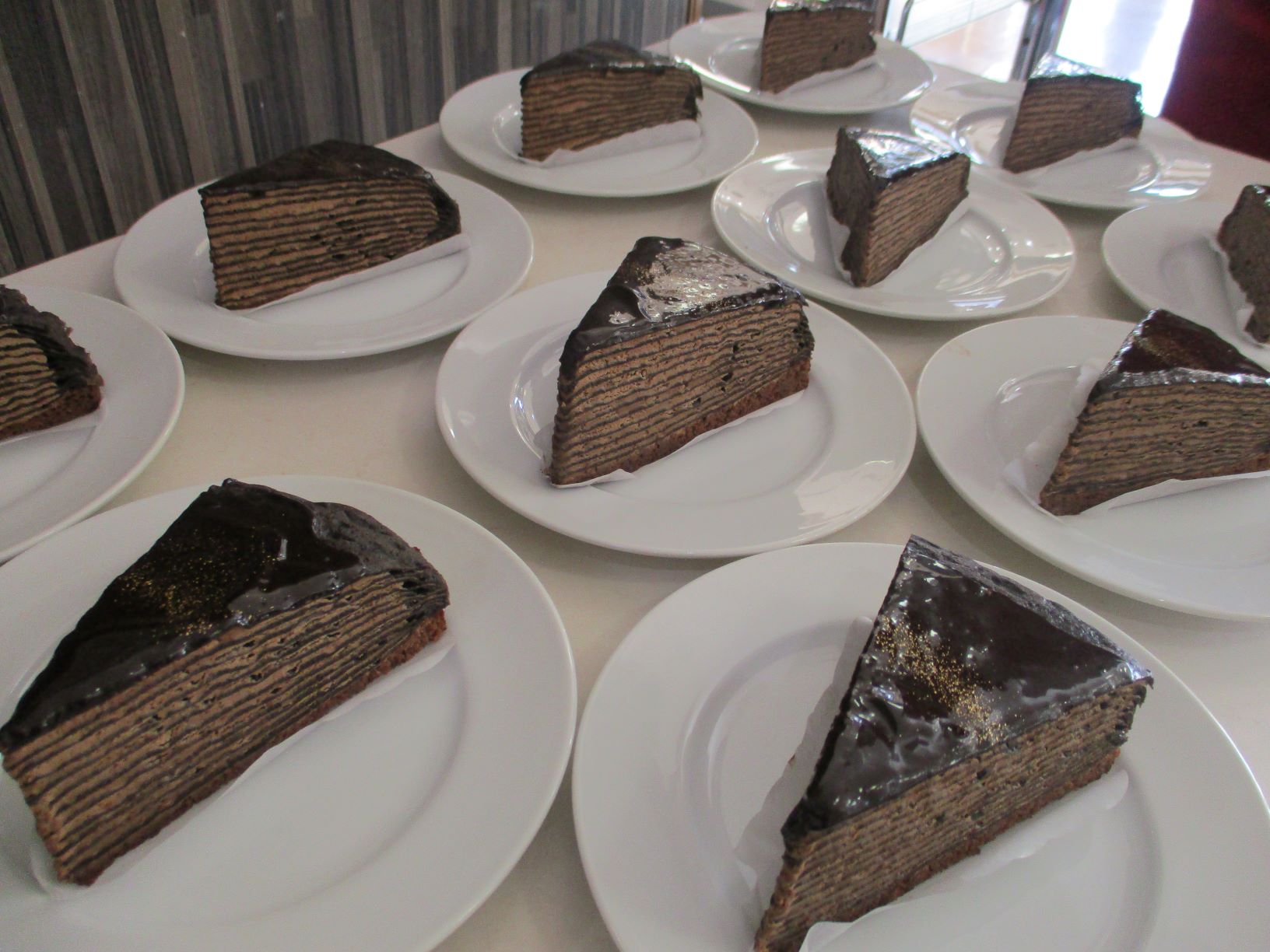 おやつでは、チョコレートケーキを召し上がり、皆様、「ケーキはやっぱり美味しいわね」