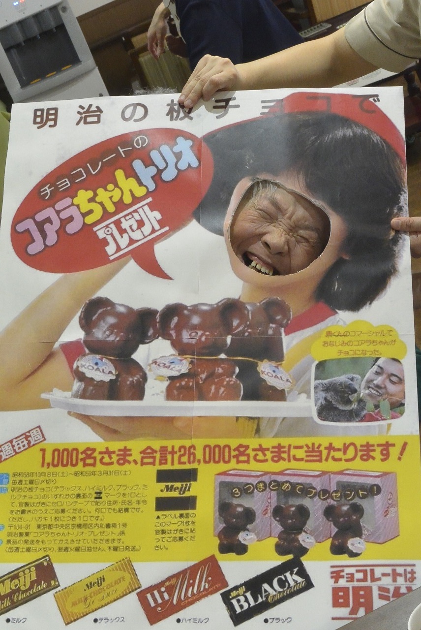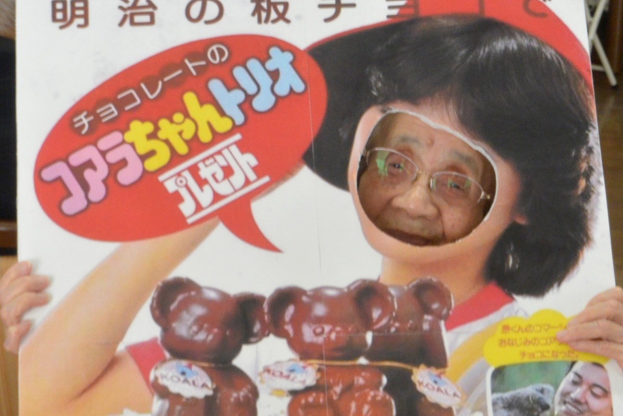 昔のお菓子のパッケージになれる!という趣旨で作成した顔出しパネル。