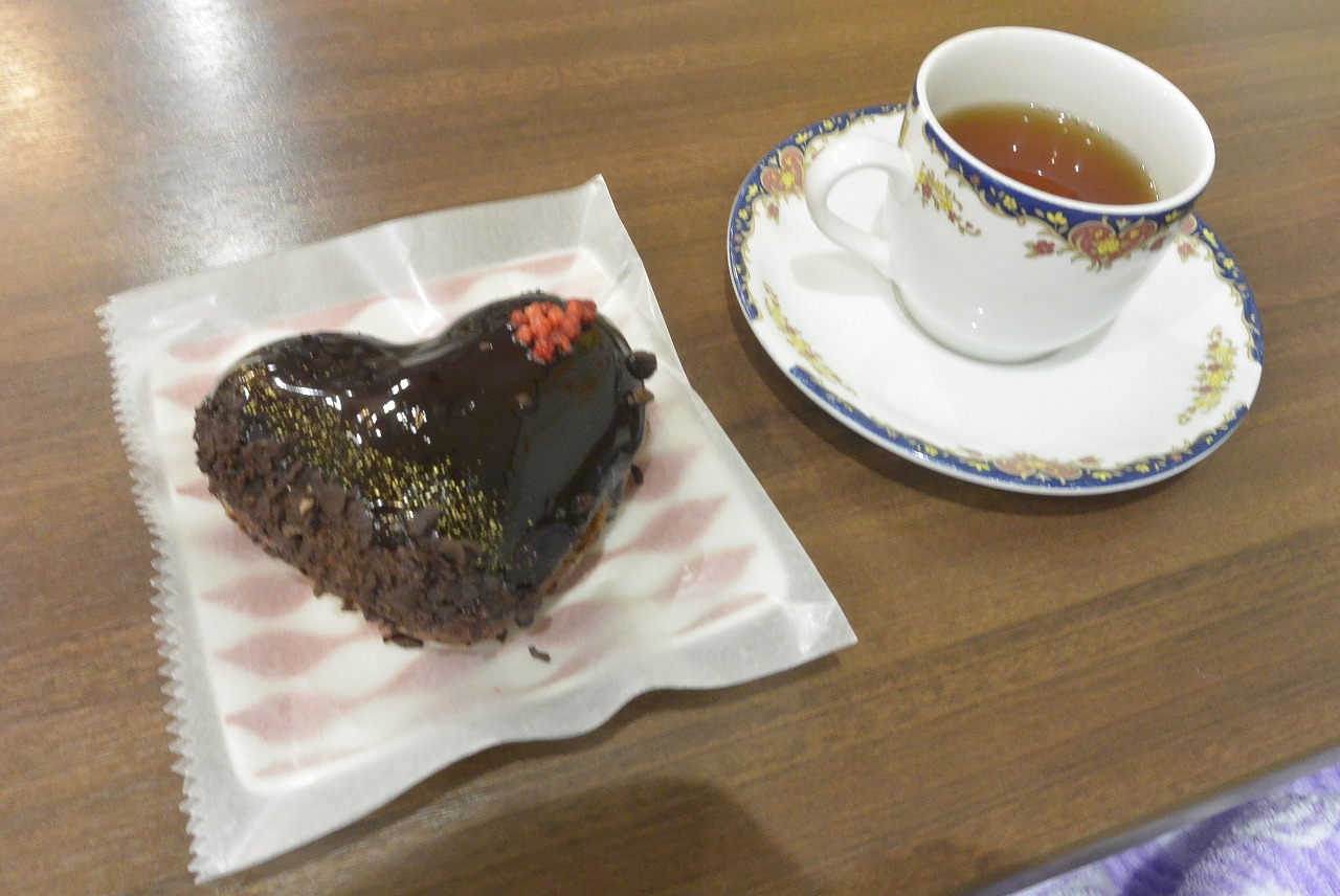 ドーナツを堪能しながら、バレンタインデーにちなんだ記念撮影会。