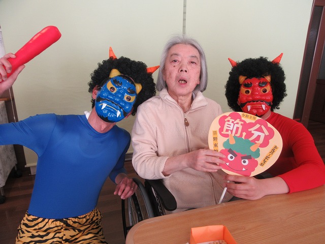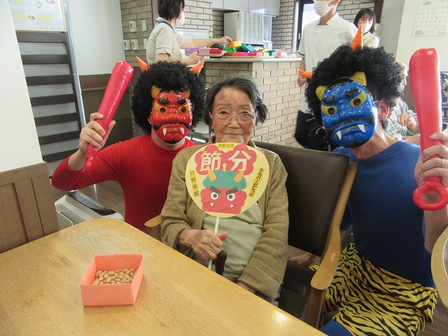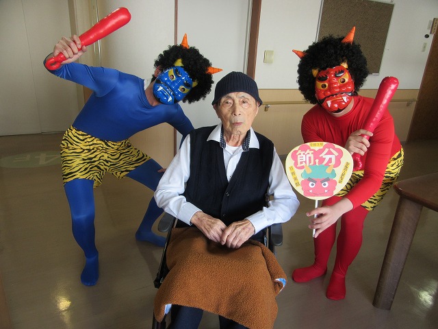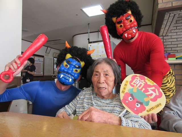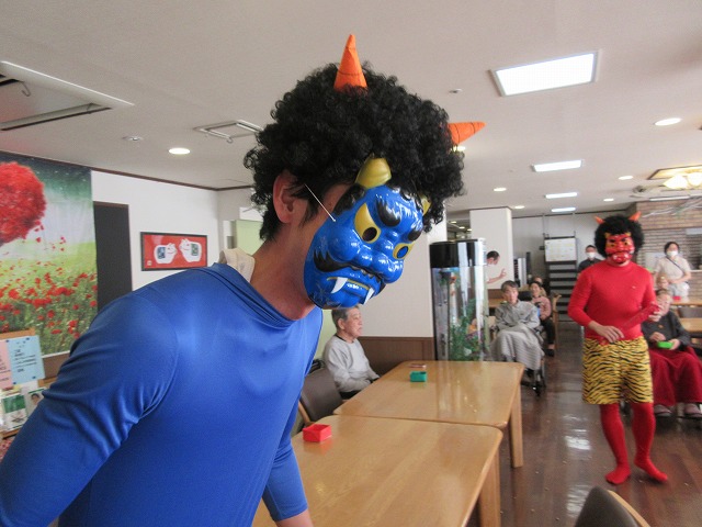 豆を投げていかれます。(じつは普段は優しいお兄さんなのですが)