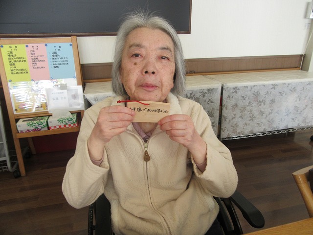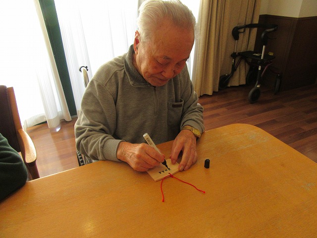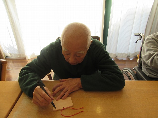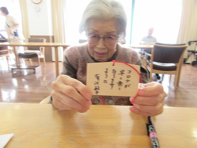 施設内初詣に向けて、ご入居者の皆様、思い思いに願いごとを