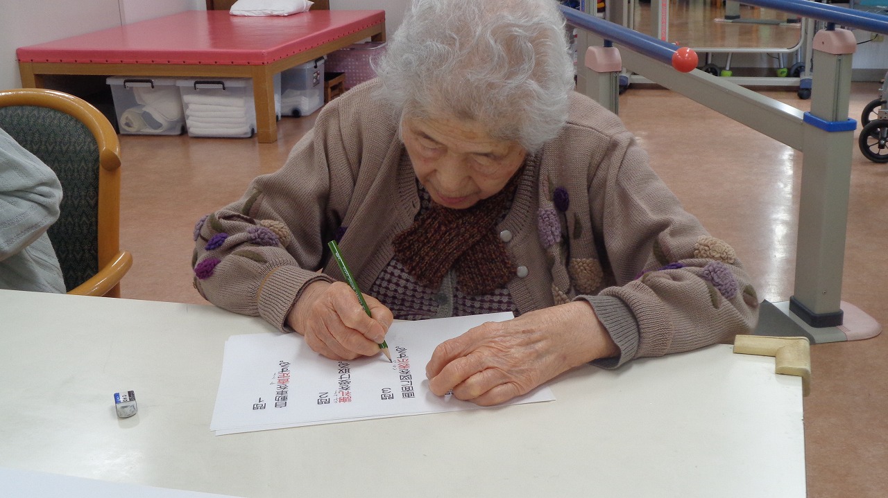 日野リハビリ室にて学習クラブで漢字検定の問題に挑戦していただきました。