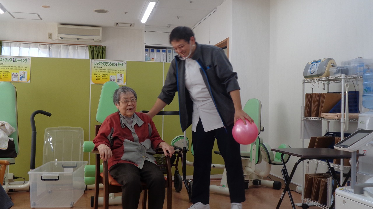 リハビリ室にてボールを使用し下肢を主に運動していただきました。