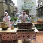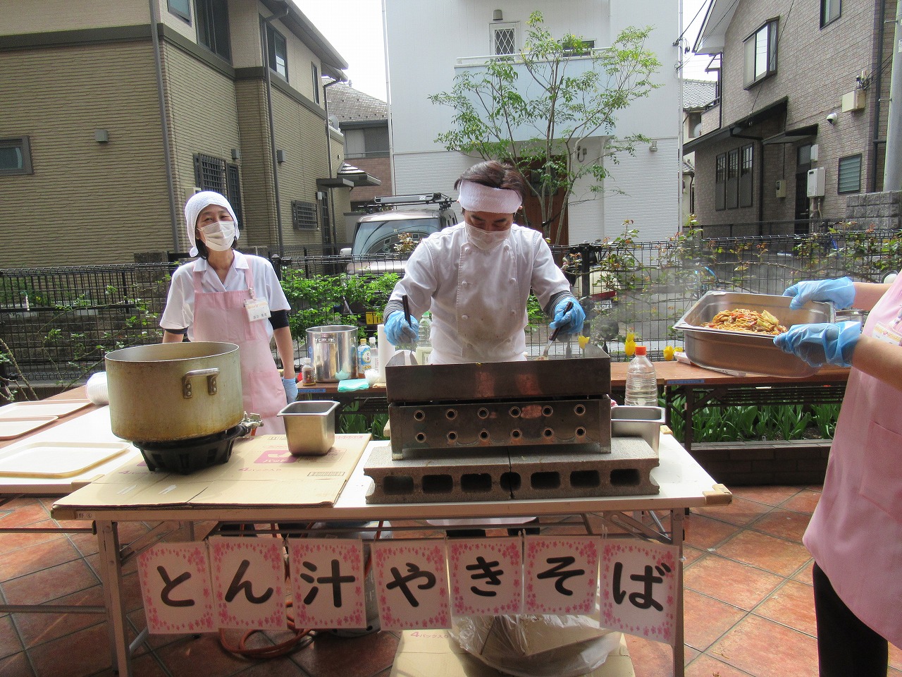 また、テラスからアツアツの焼きそばと豚汁を…