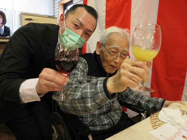 「ひな祭り楽しんでいただけますように!カンパーイ!」