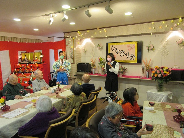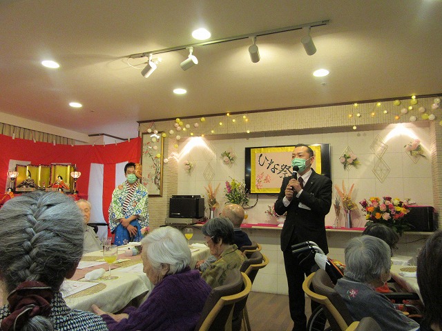 高水施設長の挨拶で令和3年ひな祭り会が始まります。