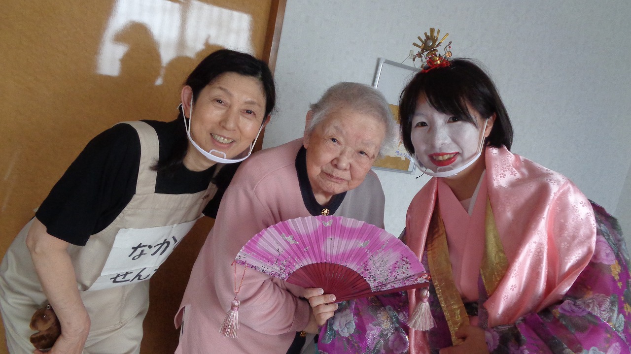 ご入居者も着物を羽織り、お雛様に扮して記念撮影★