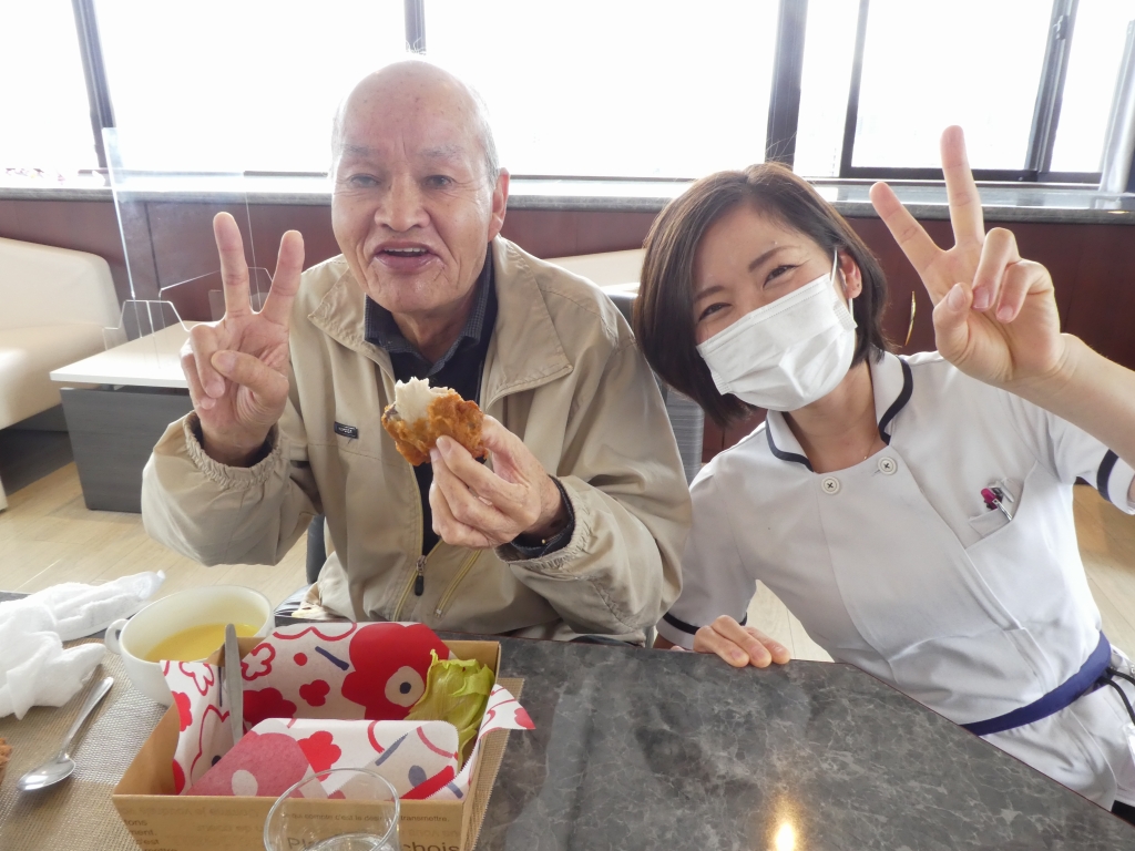 6Fラウンジにて昼食にケンタッキーフライドチキンを