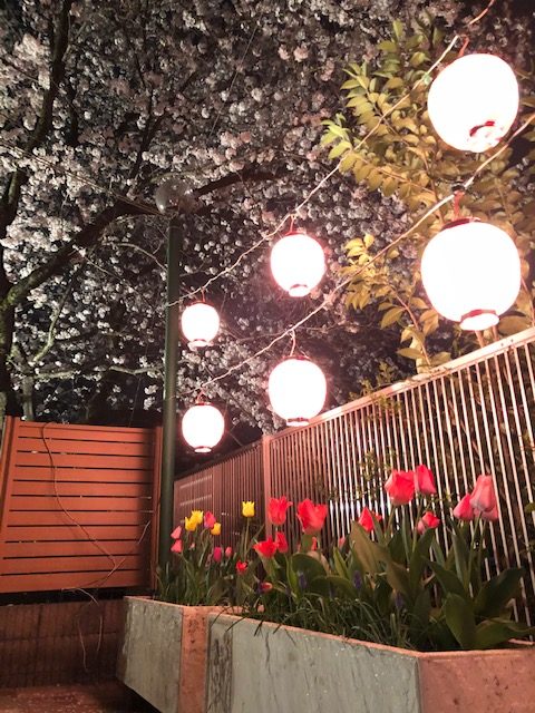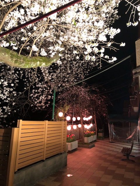 提灯の光にあたる桜は何ともきれいで気持ちを落ち着かせてくれますね。