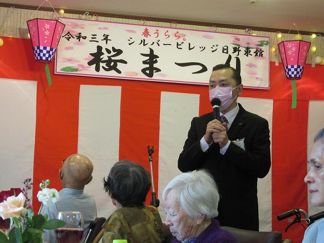 まずは、施設長のご挨拶と、神垣副ヘルパー長の乾杯です!