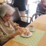 桜餡の餅菓子の上には桜の塩漬けをトッピング。