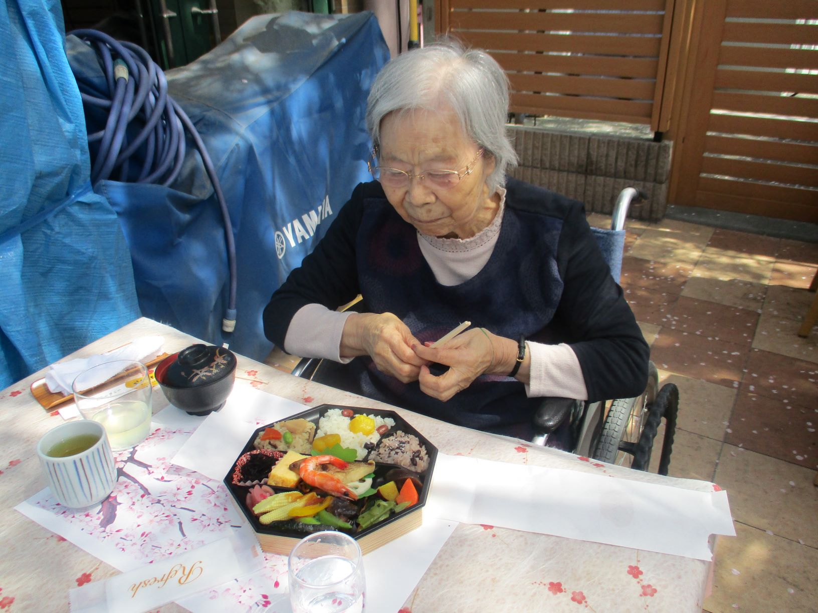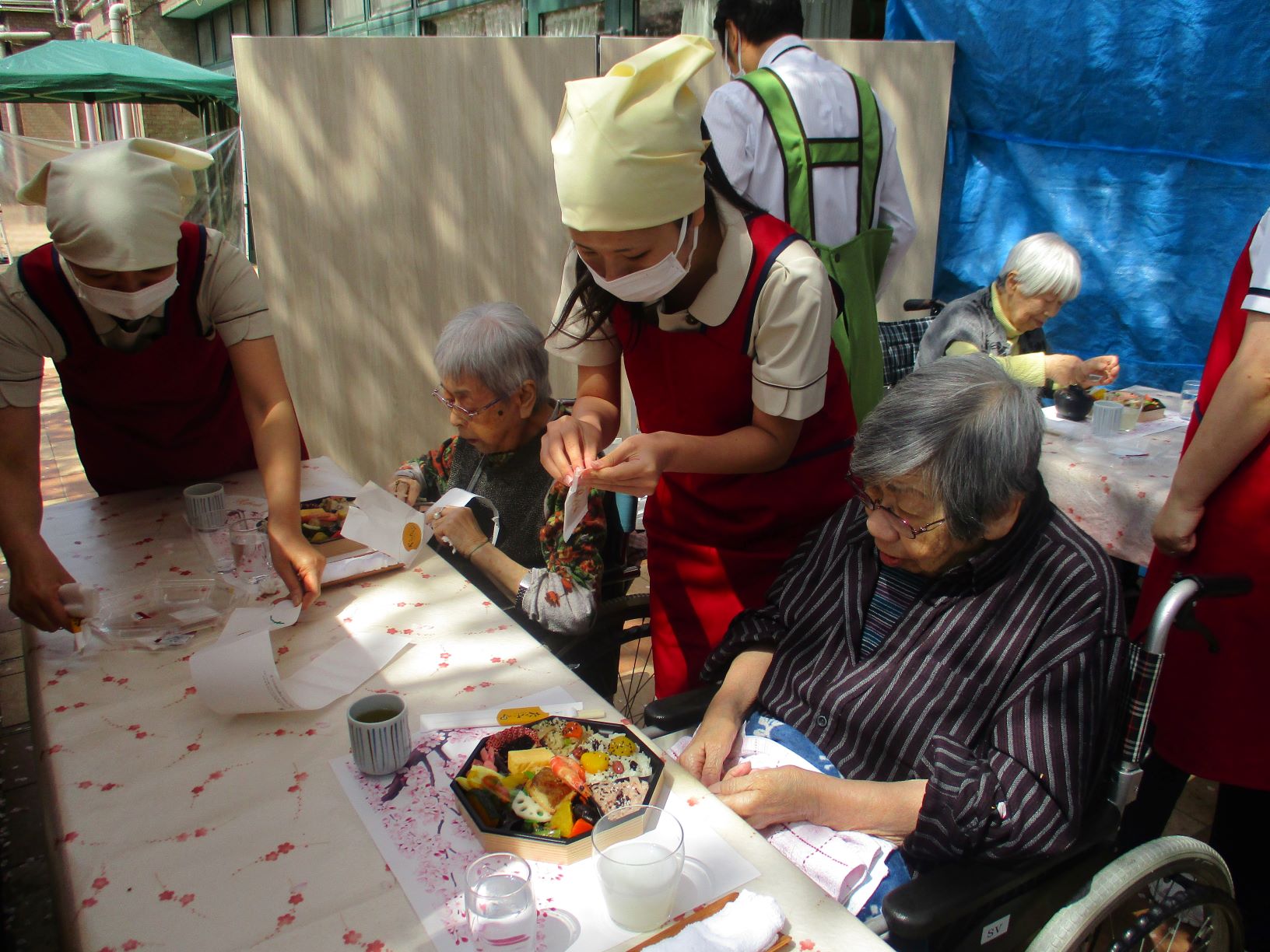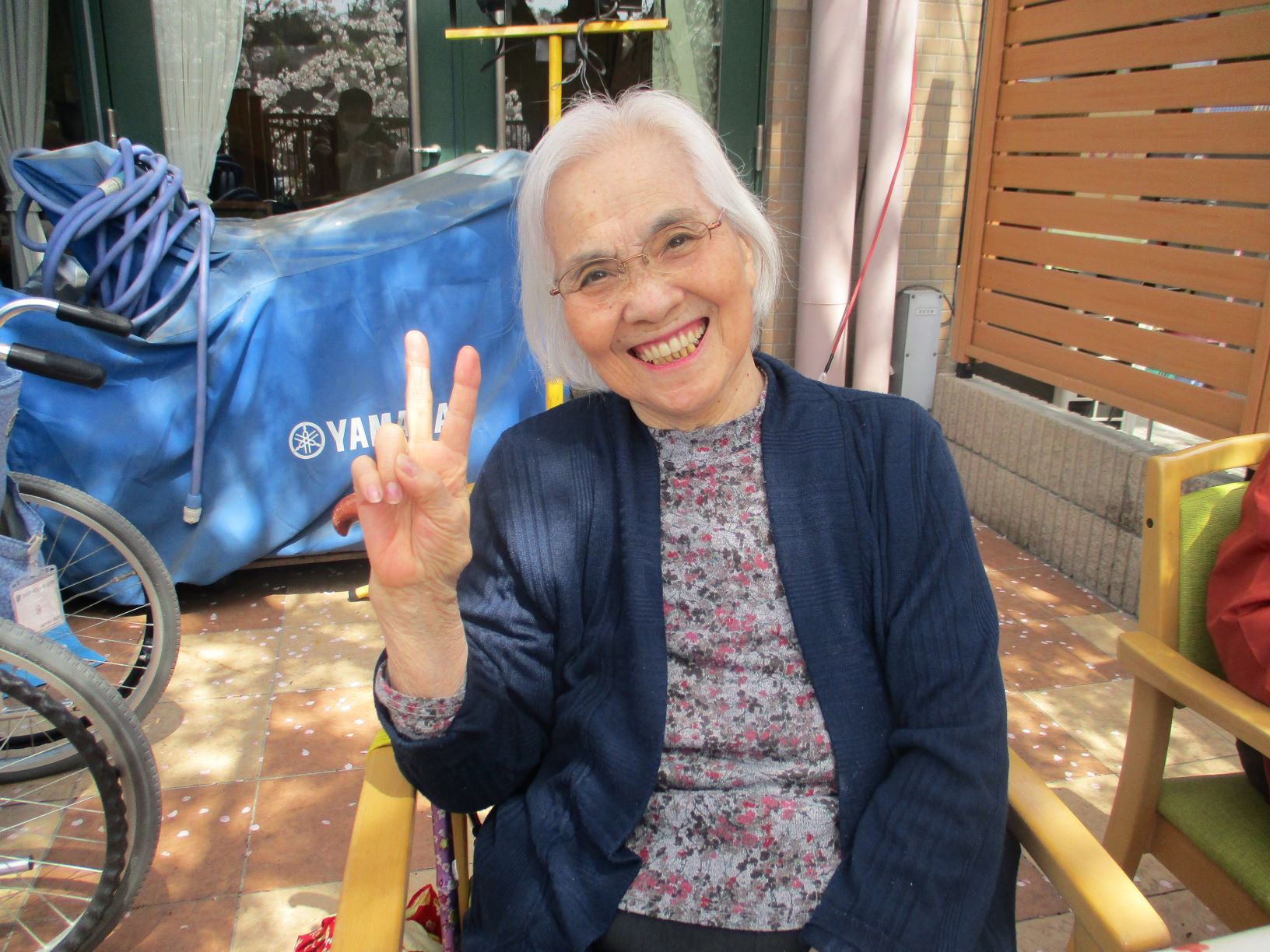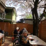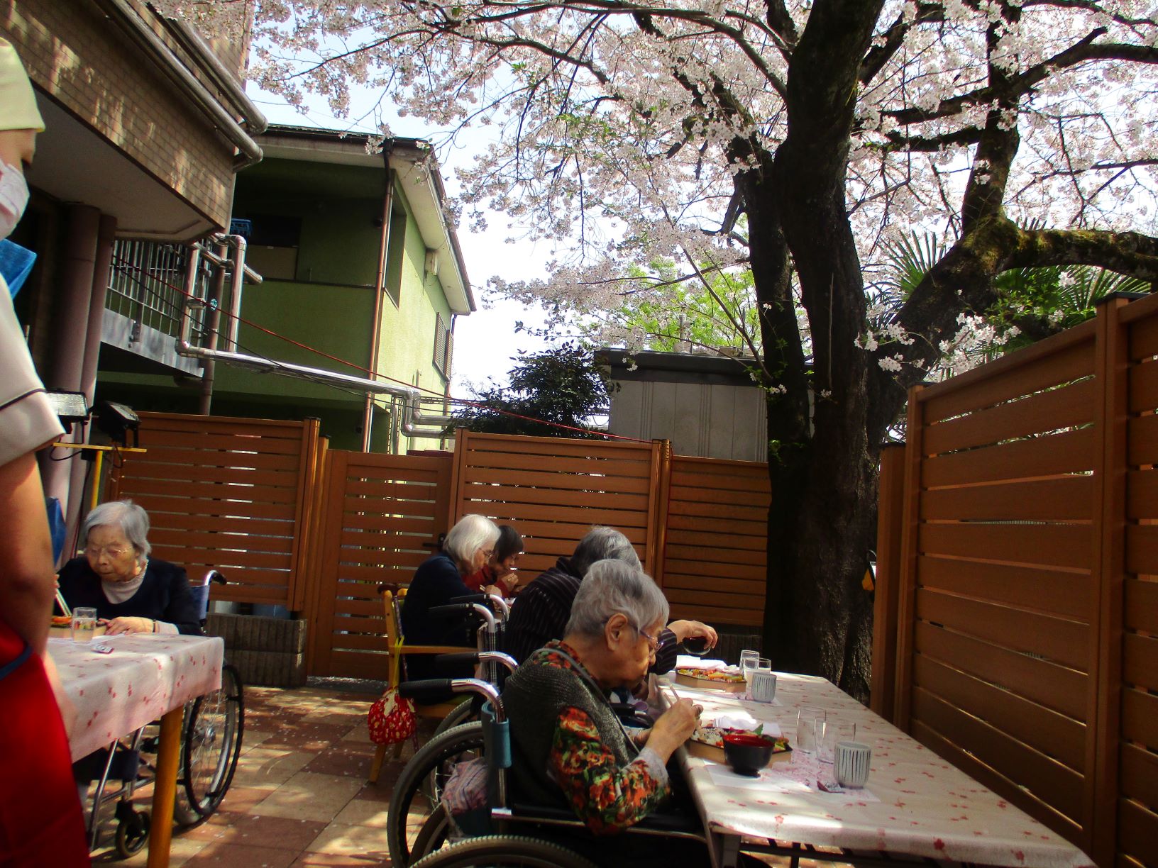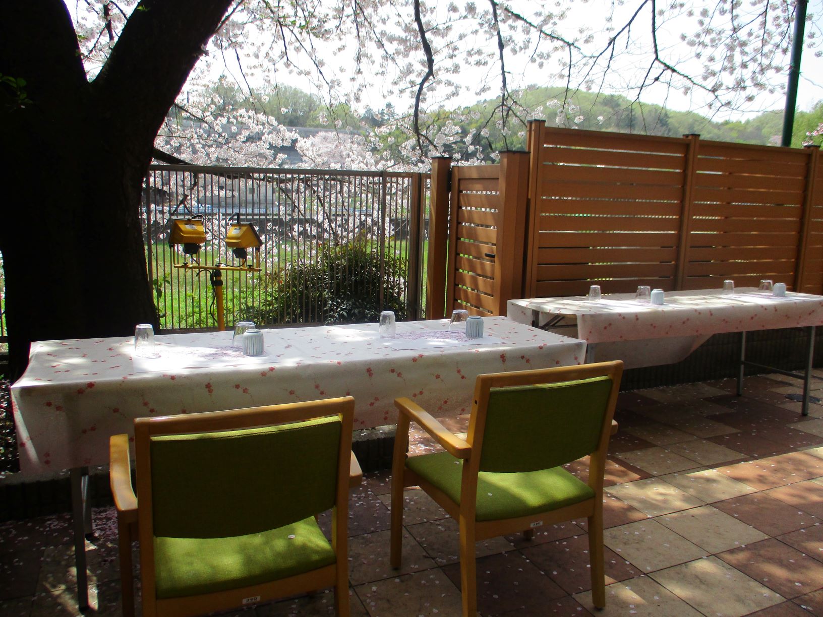 行いました。施設のテラスに満開のソメイヨシノを見上げながら