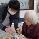 塗り方も斜めや、ぽつぽつ、様々な塗り方です。何枚も塗っていただきました。