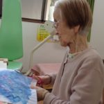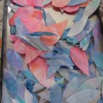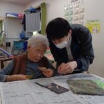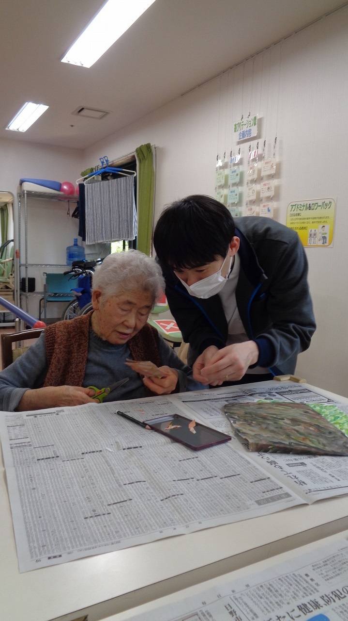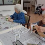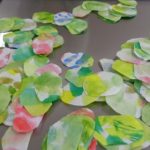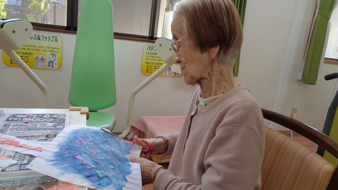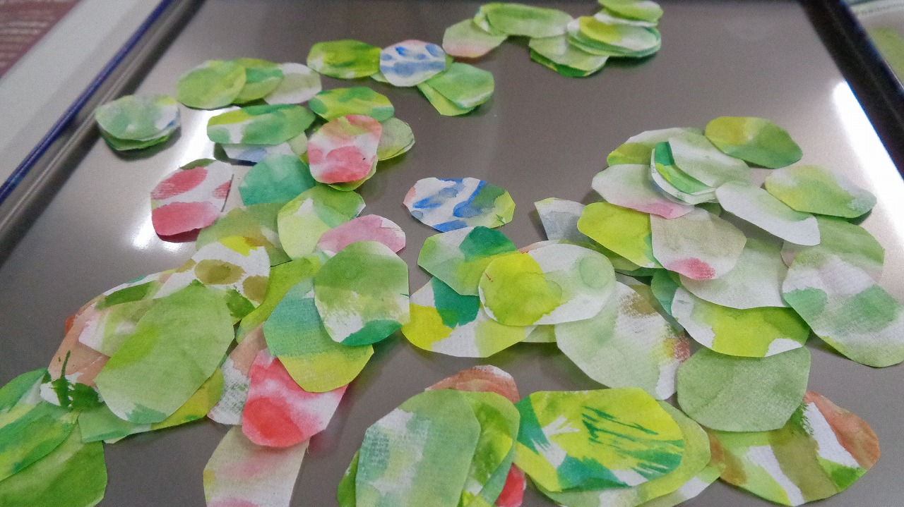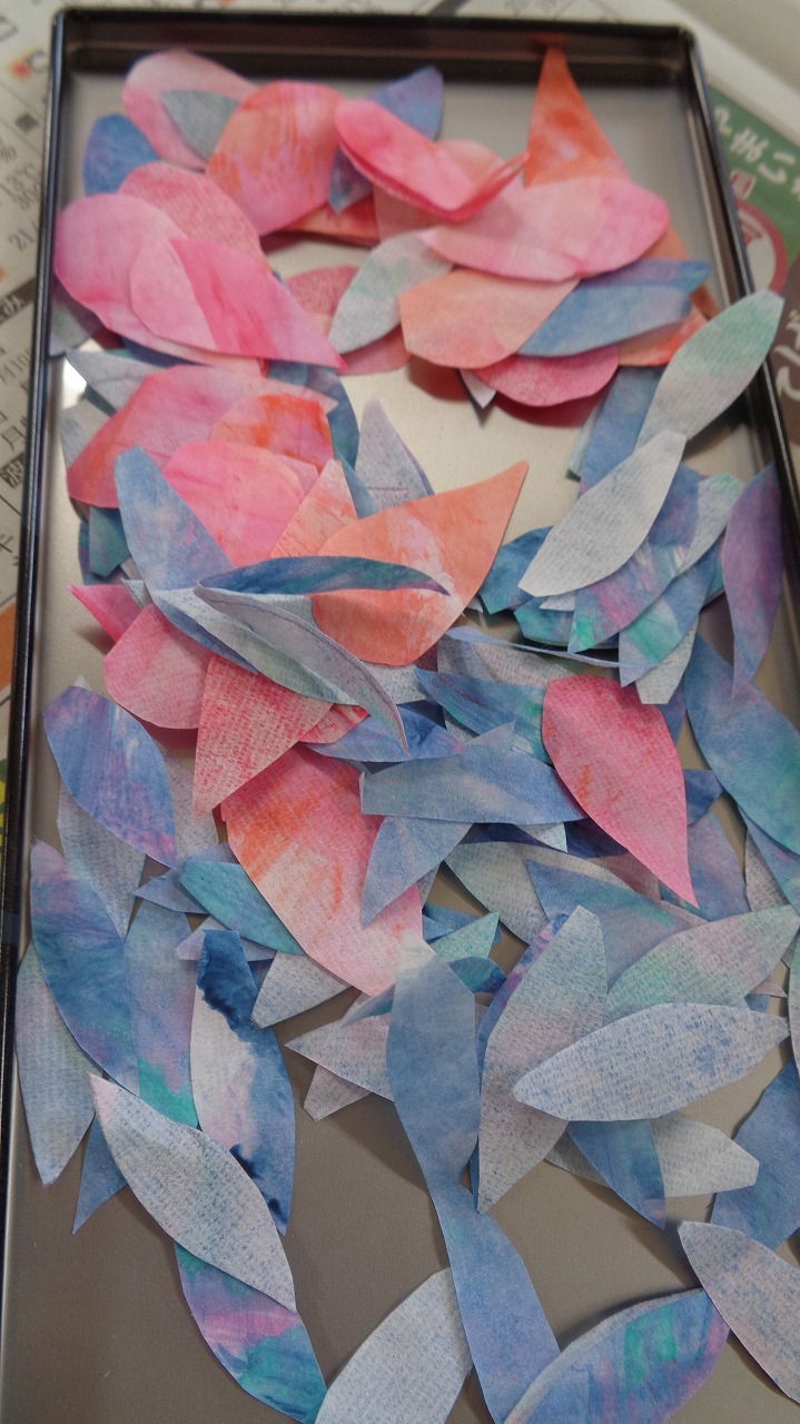 前回色を塗っていただいた半紙を、ハサミで切っていただきました。