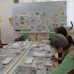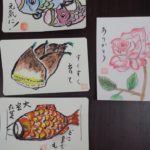 今回は絵手紙に初参加の方がいらっしゃいました。まずは鉛筆でスケッチをして、それからとても上手に色を付けてくださいました。