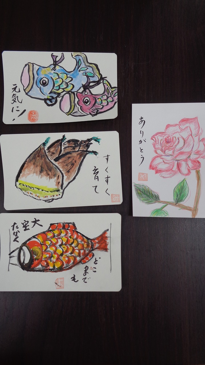 タケノコ、バラ、鯉のぼり等を描いていただきました。