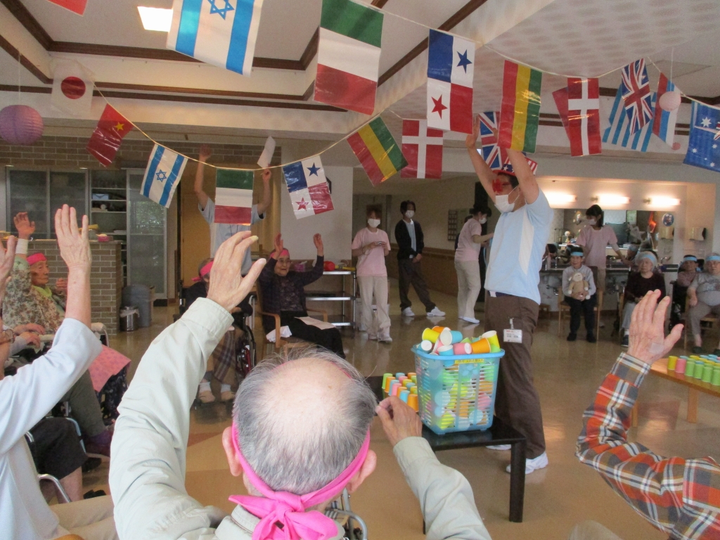 午後から、1,2,3階の皆様には、2階に集まって頂き、運動会スタートです。