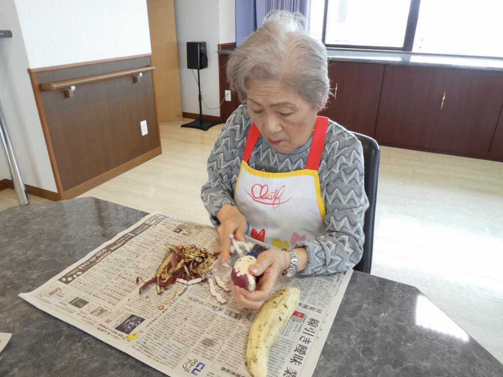 さつまいもの皮を剥く所から成形まで全て皆様に作って