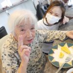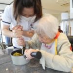 6階ラウンジにて、6名のご入居者と