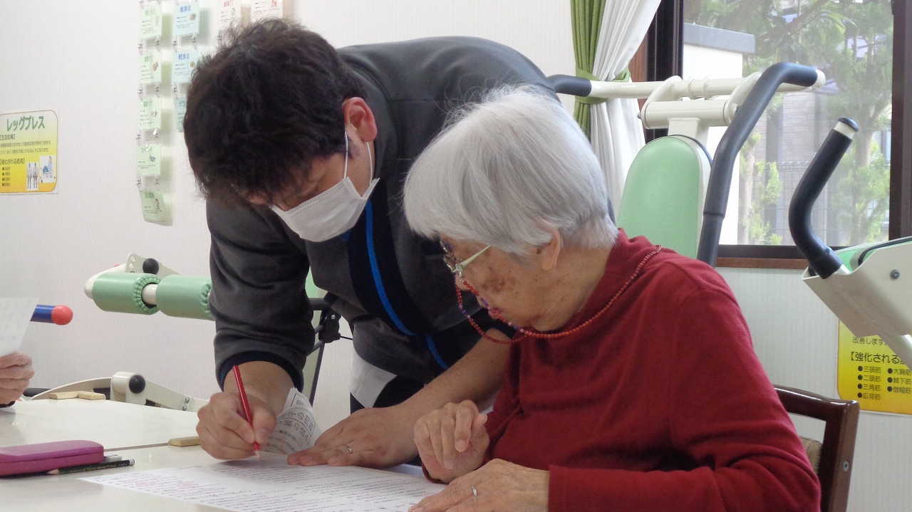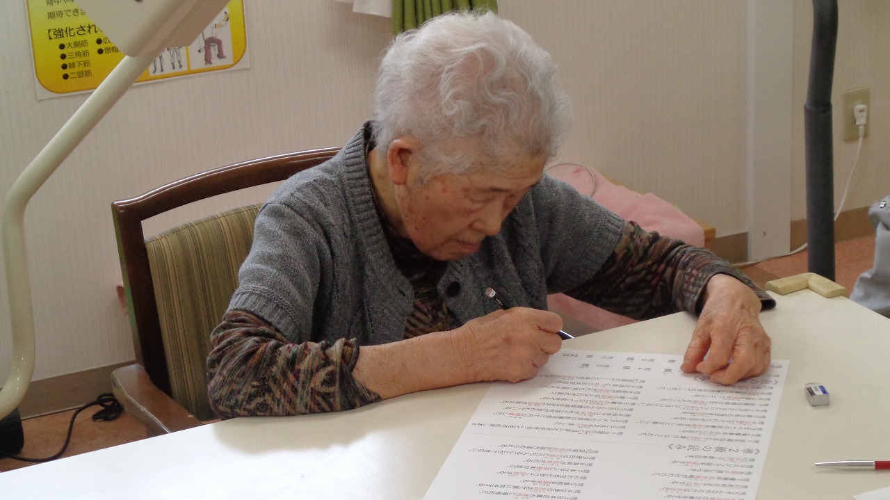 日野リハビリ室にて学習クラブで漢字検定の問題に挑戦していただきました。