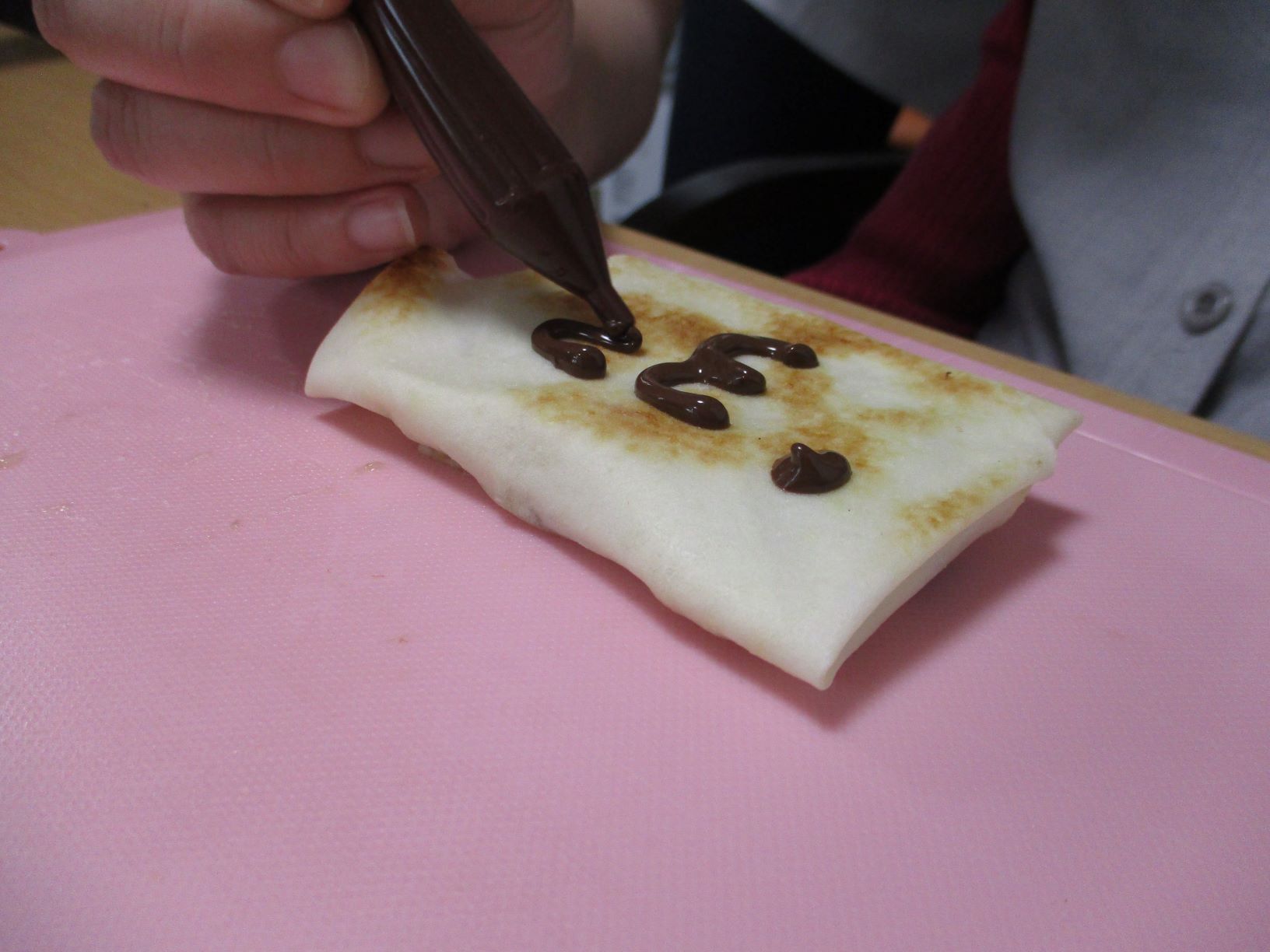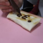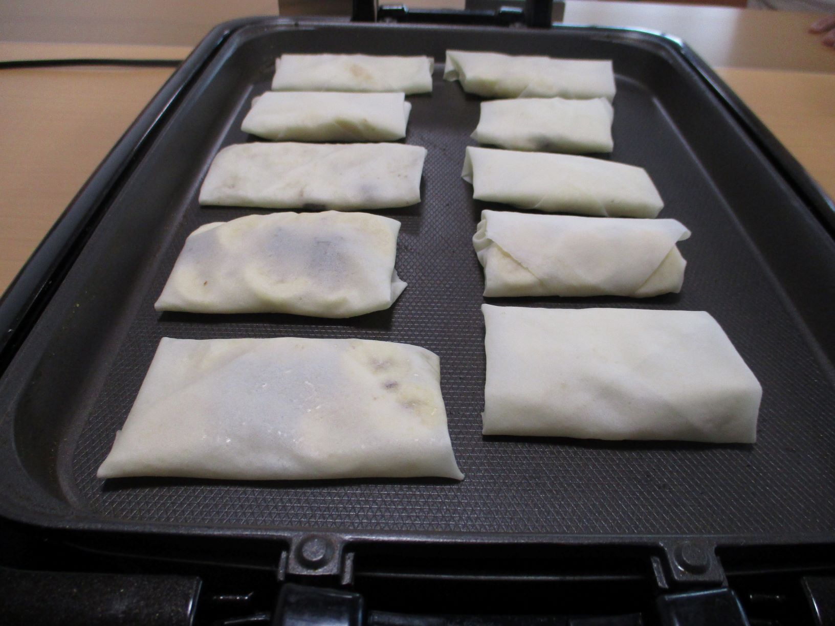 春巻きの皮にバナナと板チョコを包み、ホットプレートで