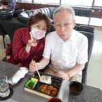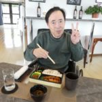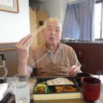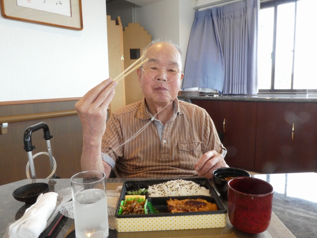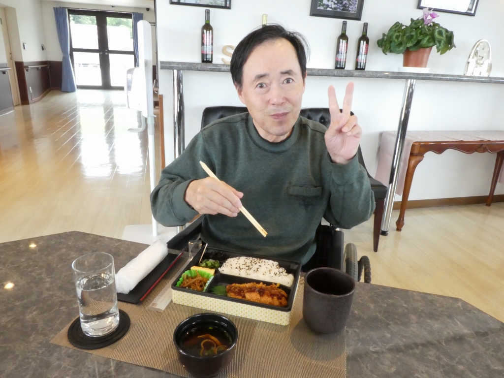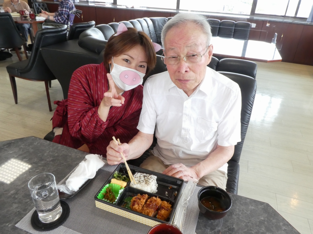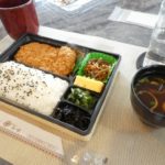 6階ラウンジにて「まい泉」のとんかつ弁当を