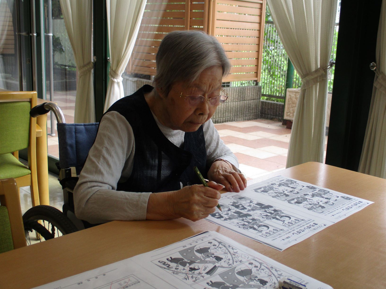おやつ後の頭の体操ということで、漢字、計算問題、間違い探しなど