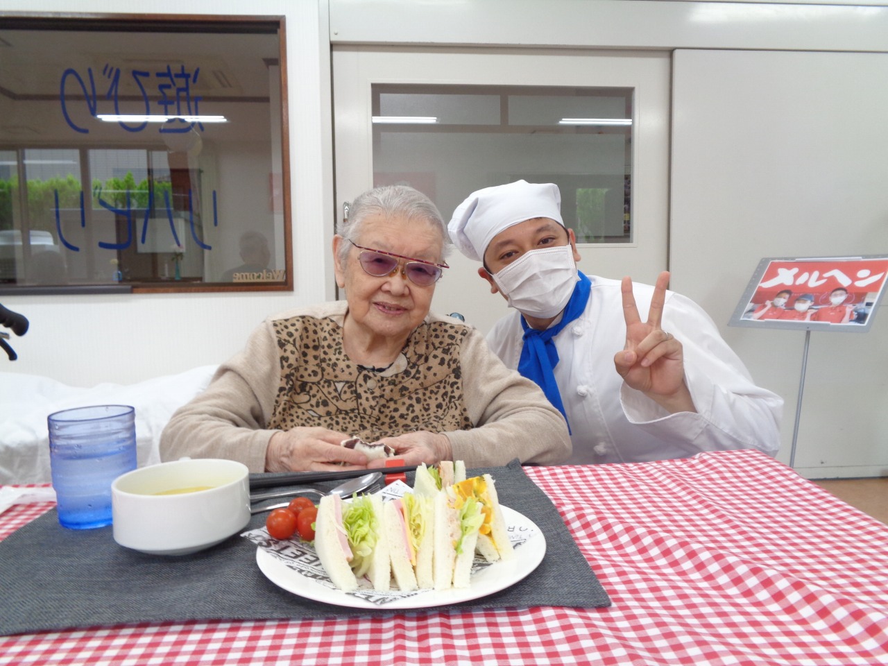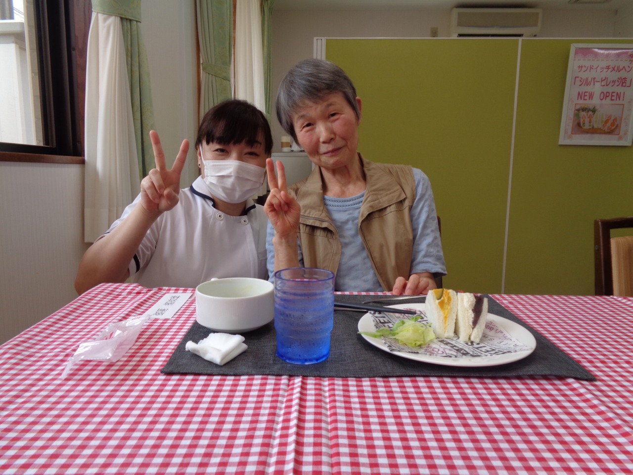 日野リハビリ室にてランチを行いました。今回のお店は「メルヘン」で、メニューはサンドイッチです。