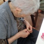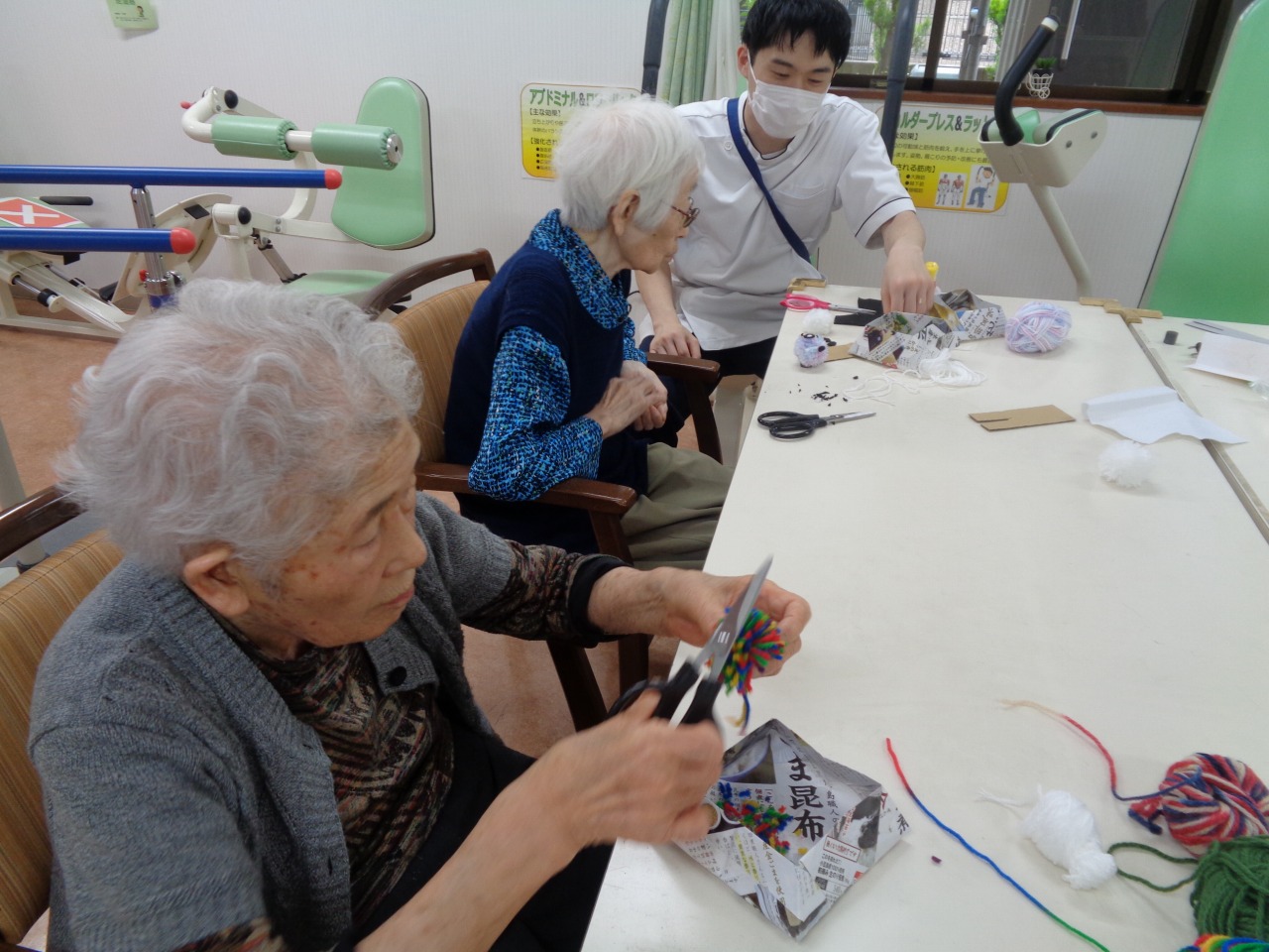 ・厚紙にくるくると毛糸を50回巻いて真ん中を結ぶ