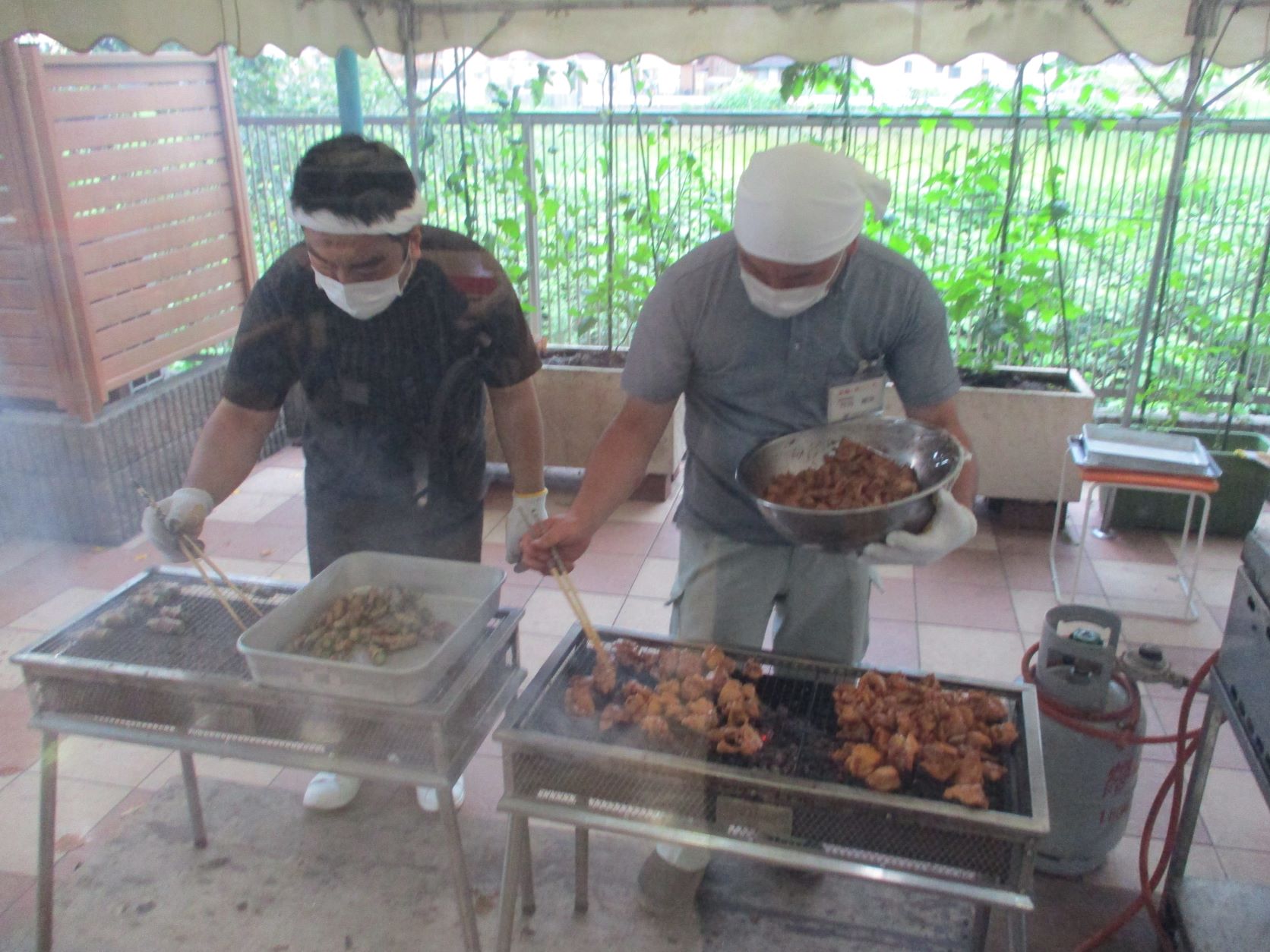 午前中から、炭に火をつけたりお肉を焼いてくださったりと、事務所の