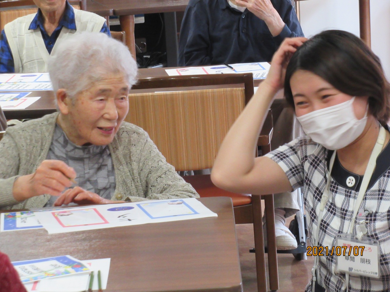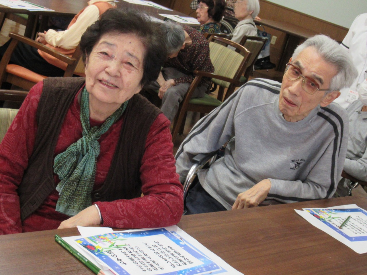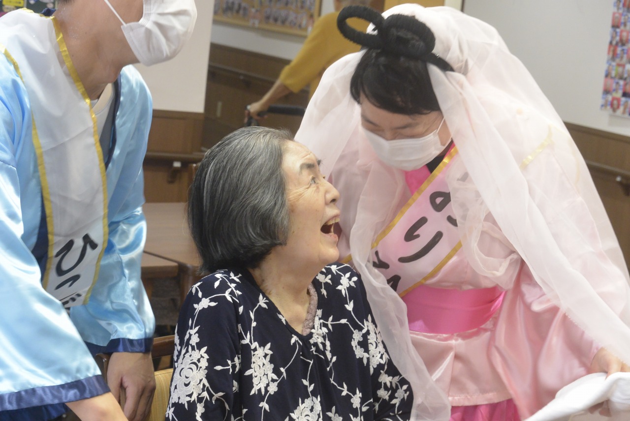 勝った2人は衣装替え♪皆様が書かれた短冊を読み上げ、一緒に七夕の詩を歌いました。