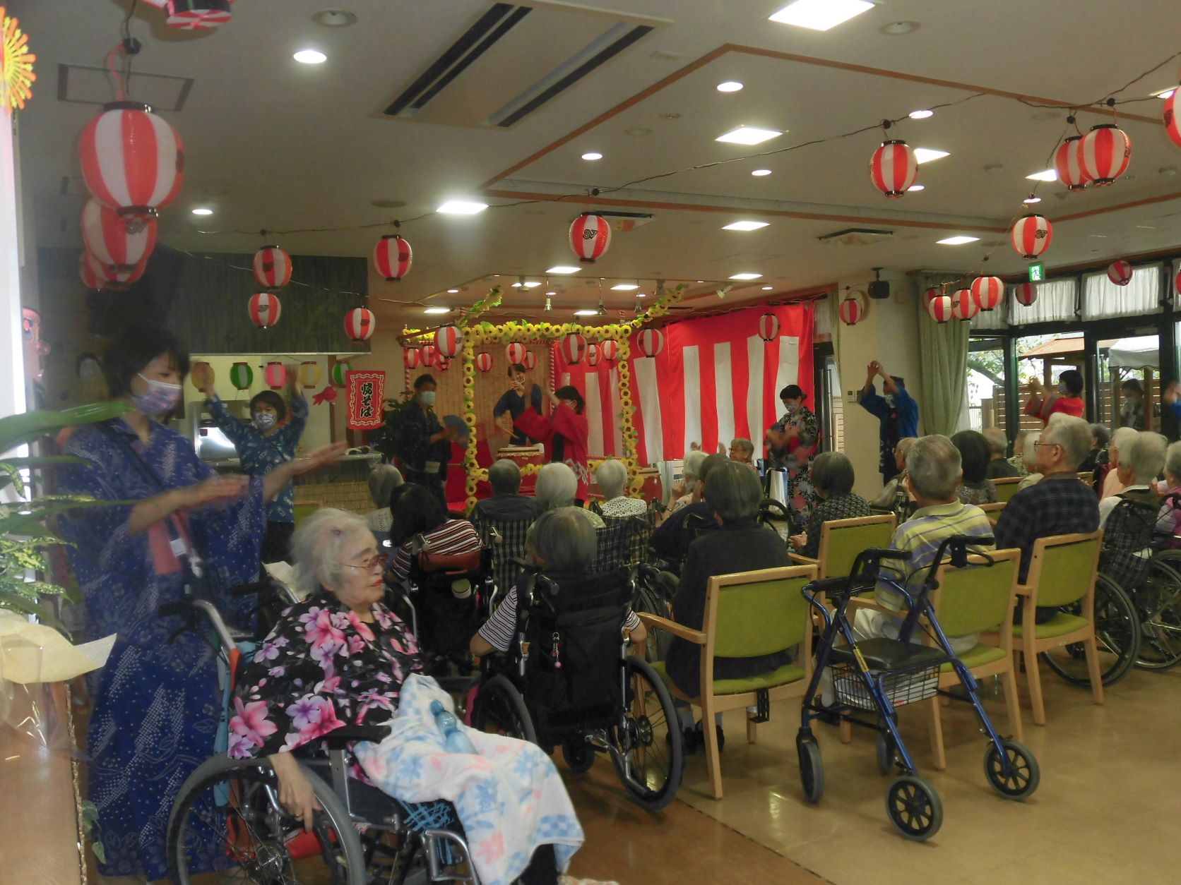 一生懸命練習に励んだ職員の余興に、ご入居者の皆様から