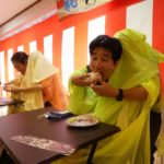 午前中は式典を行い、午後からは職員出し物で2人羽織をしました。