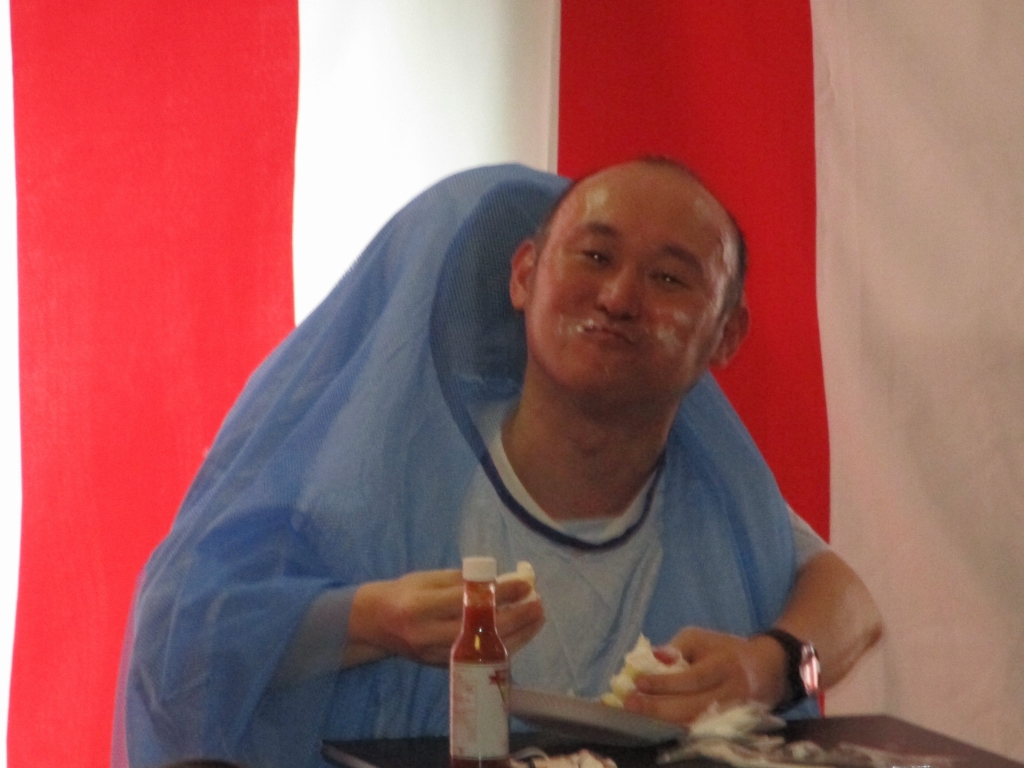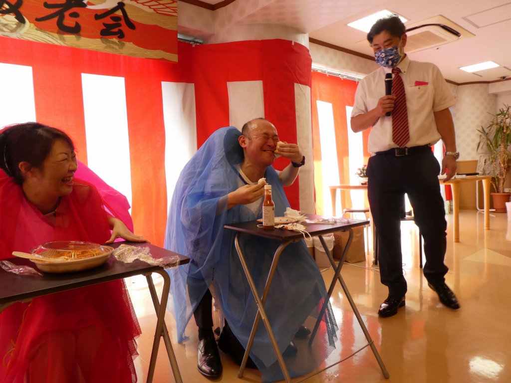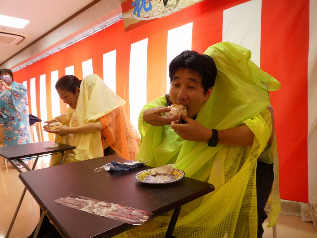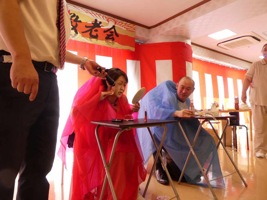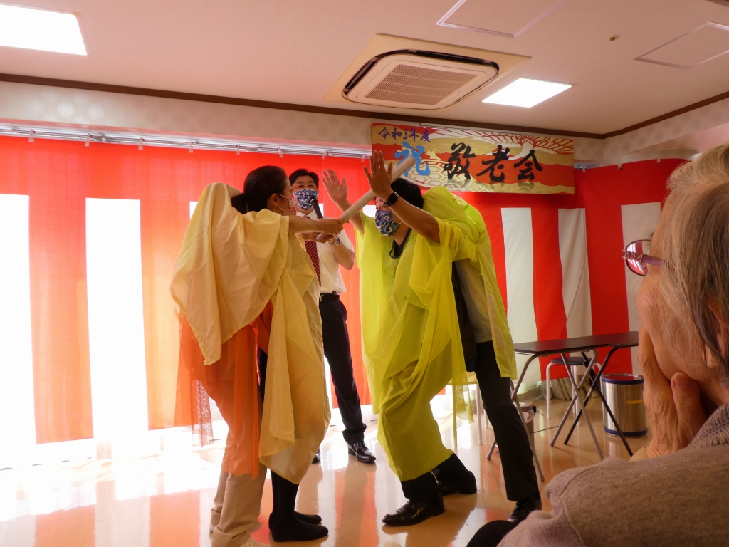 午前中は式典を行い、午後からは職員出し物で2人羽織をしました。