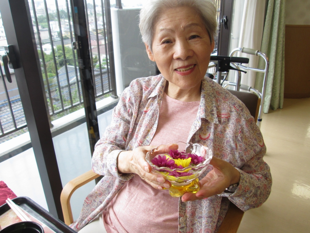 「重陽の節句」を「菊の節句」とも言い邪気を払い長寿の効能があると考えられ菊を用いて本日は、「重陽の節句」をお祝いしたいと思います。