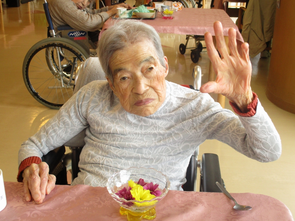テーブルに菊を飾らせて頂き、スペシャルランチを召し上がって頂きました。