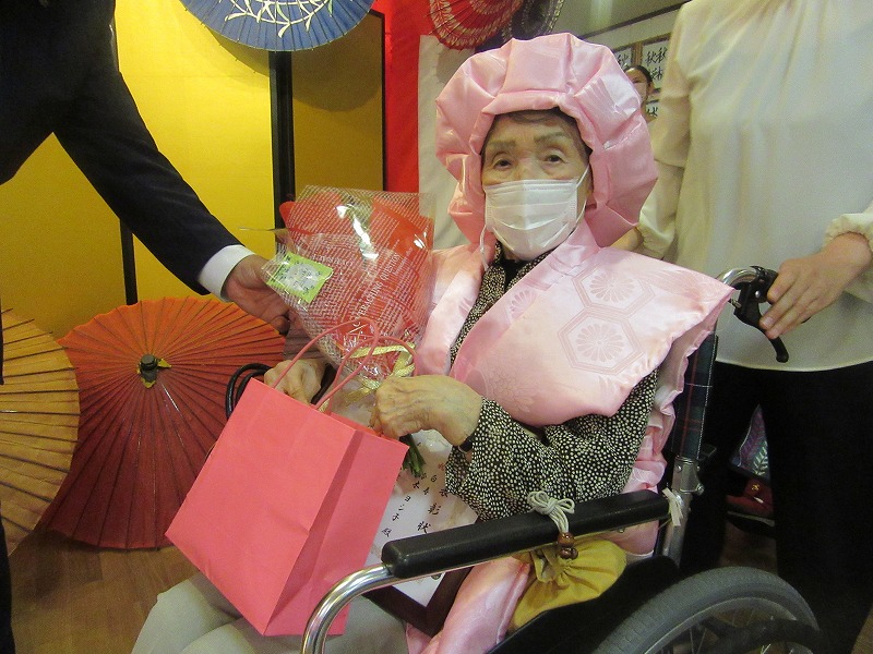 米寿、卒寿、白寿、最長寿の皆さまに賞状と記念の品をお贈りしました。