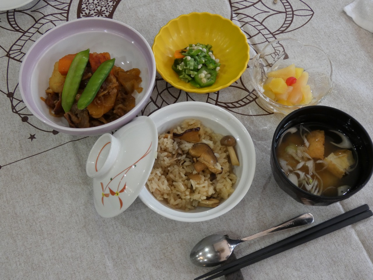 今回のメニューは、きのこの混ぜご飯と肉じゃがです!