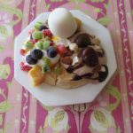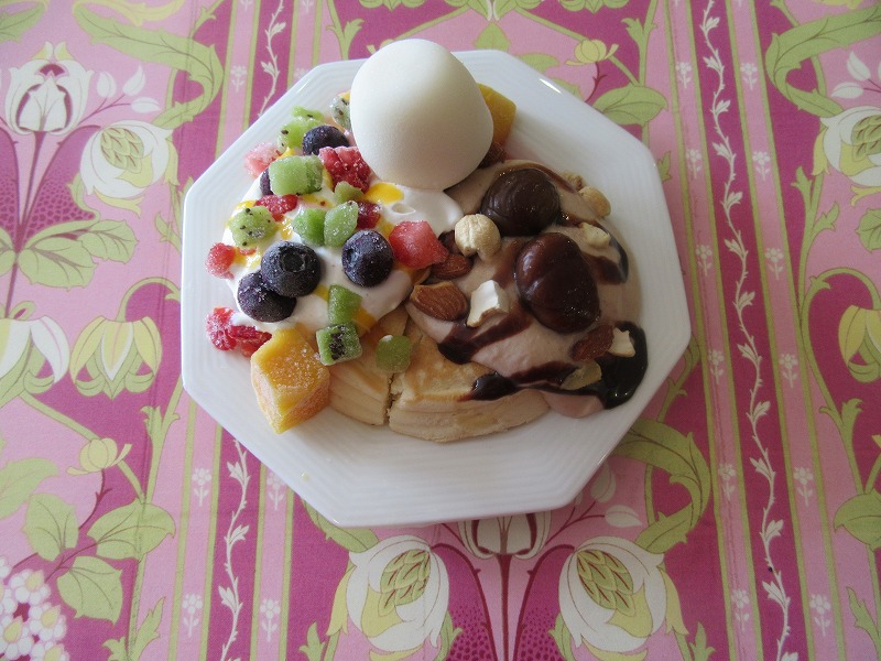 マロンチョコナッツソース、フルーツ生クリームソース、