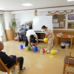 後方にある風船が割れ得点がもらえる、というレクリハを行いました。