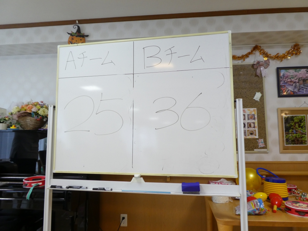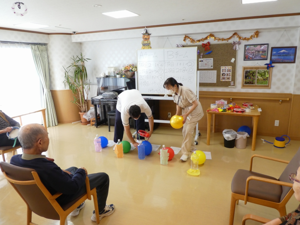 後方にある風船が割れ得点がもらえる、というレクリハを行いました。