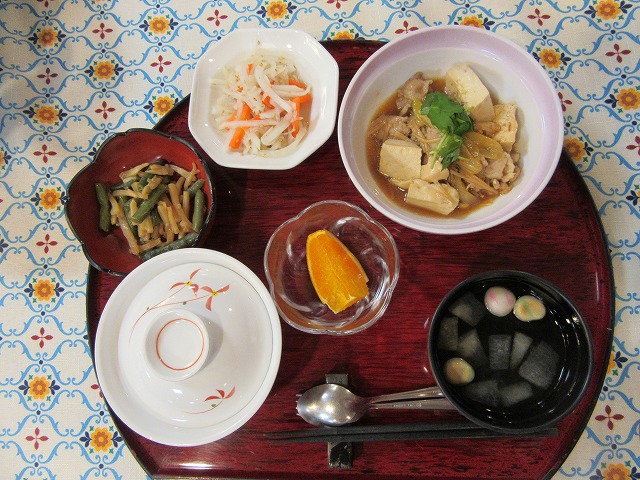 今月は「肉豆腐」と「千切り大根のゆず胡麻和え」