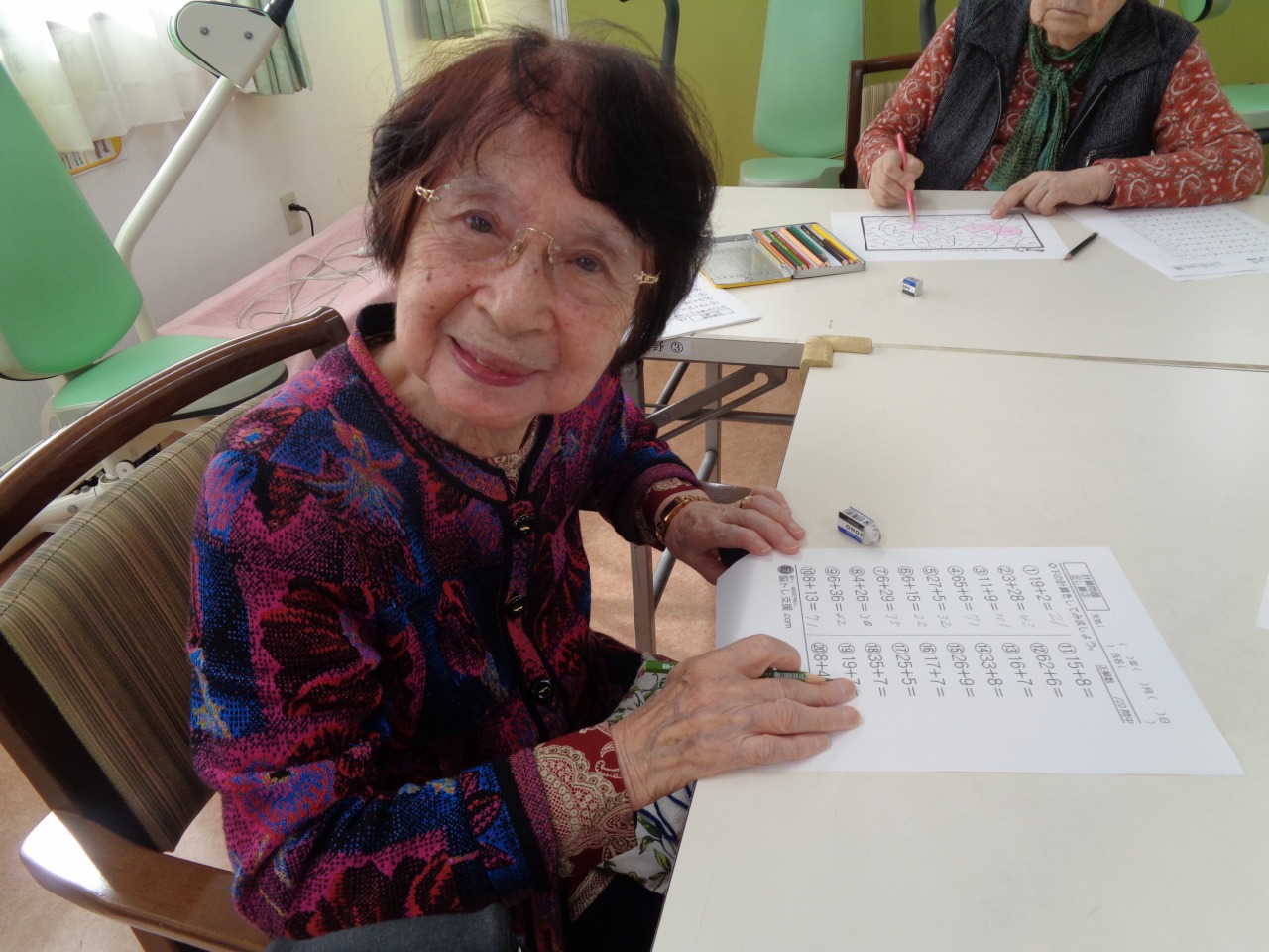 本日は日野リハビリ室にて学習クラブを開催し、頭の体操として計算問題に挑戦していただきました。