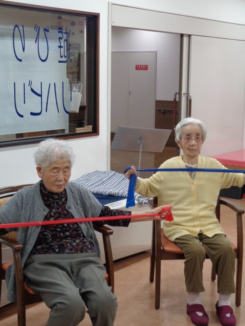 皆様、使い慣れない道具でしたが「こういう運動もいいわね」と喜んでくださいました!今後も様々な運動ができるように工夫していきたいと思います!