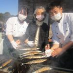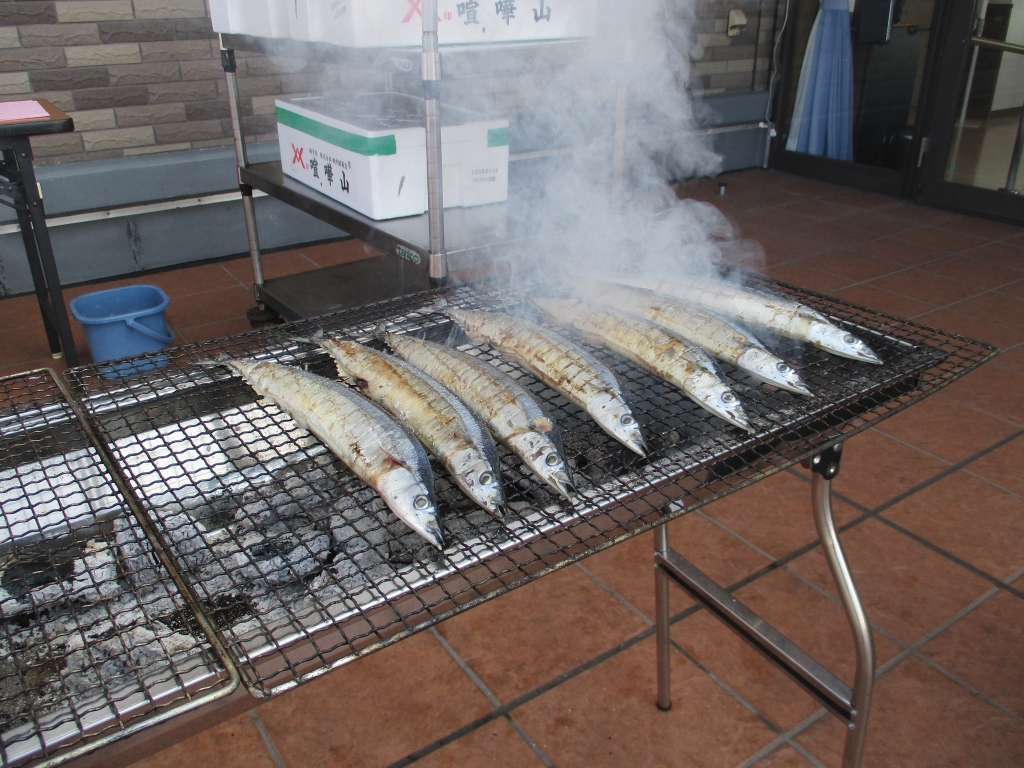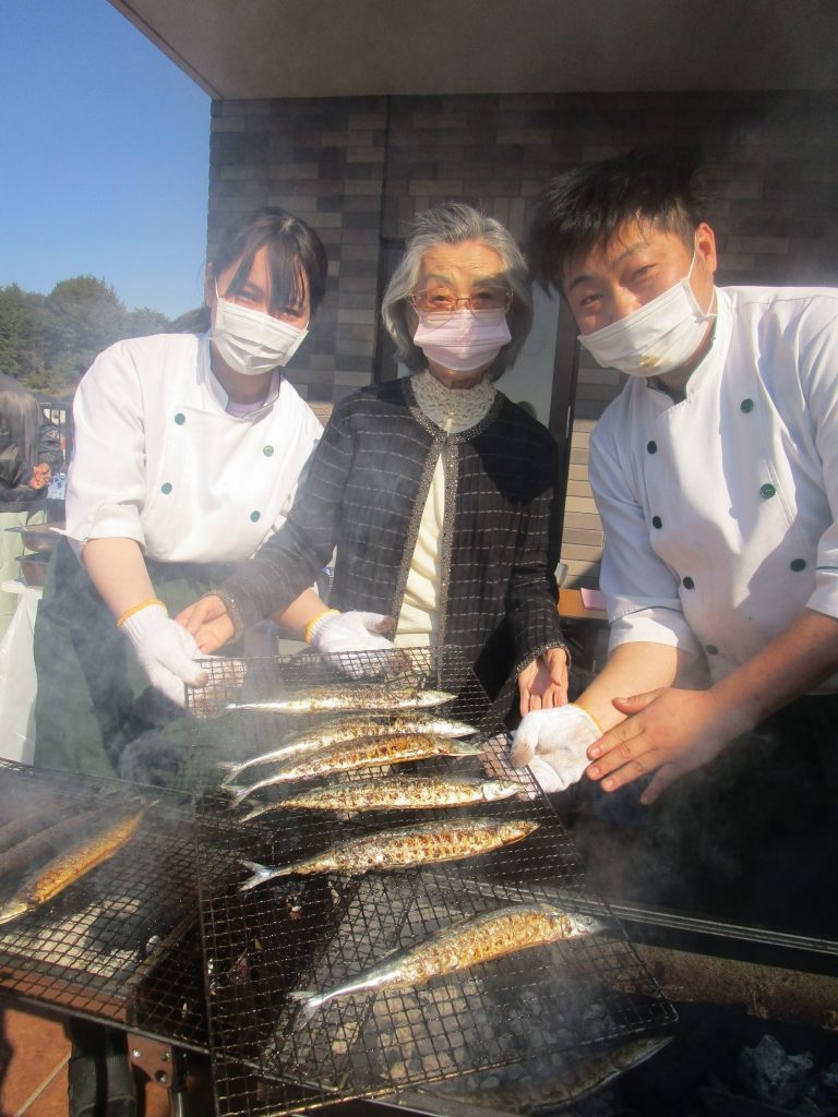 11月3日 本日6階屋上で、秋刀魚を炭火で焼いて、昼食に皆様に召し上がって頂きました。