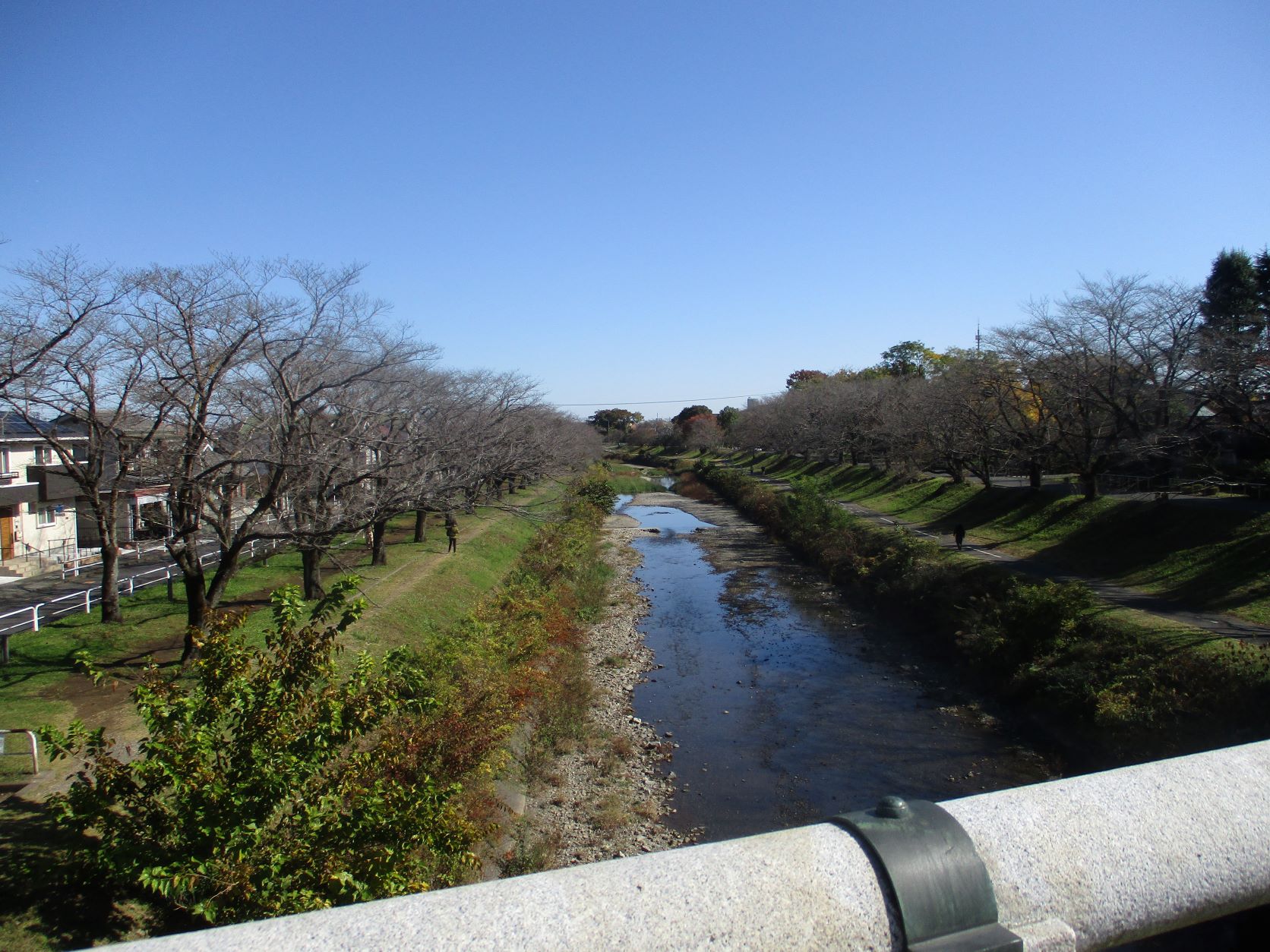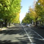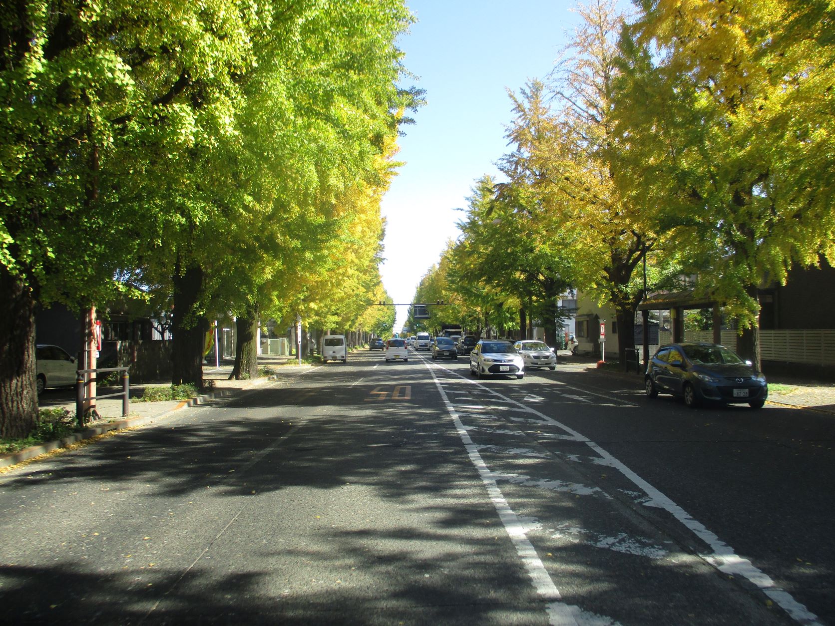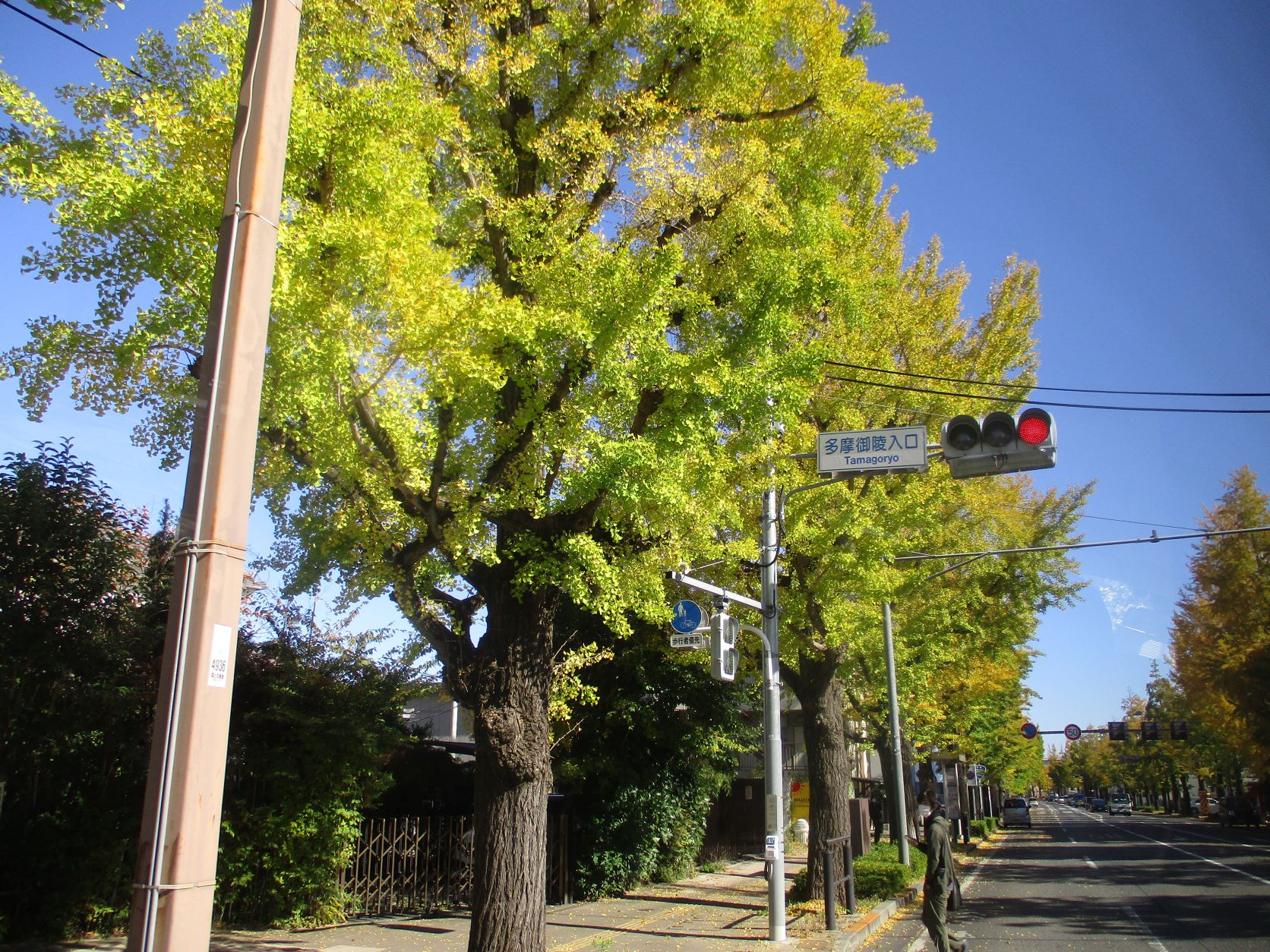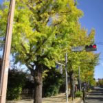 イチョウ並木は黄色く色付いており、雲一つない青空でした。