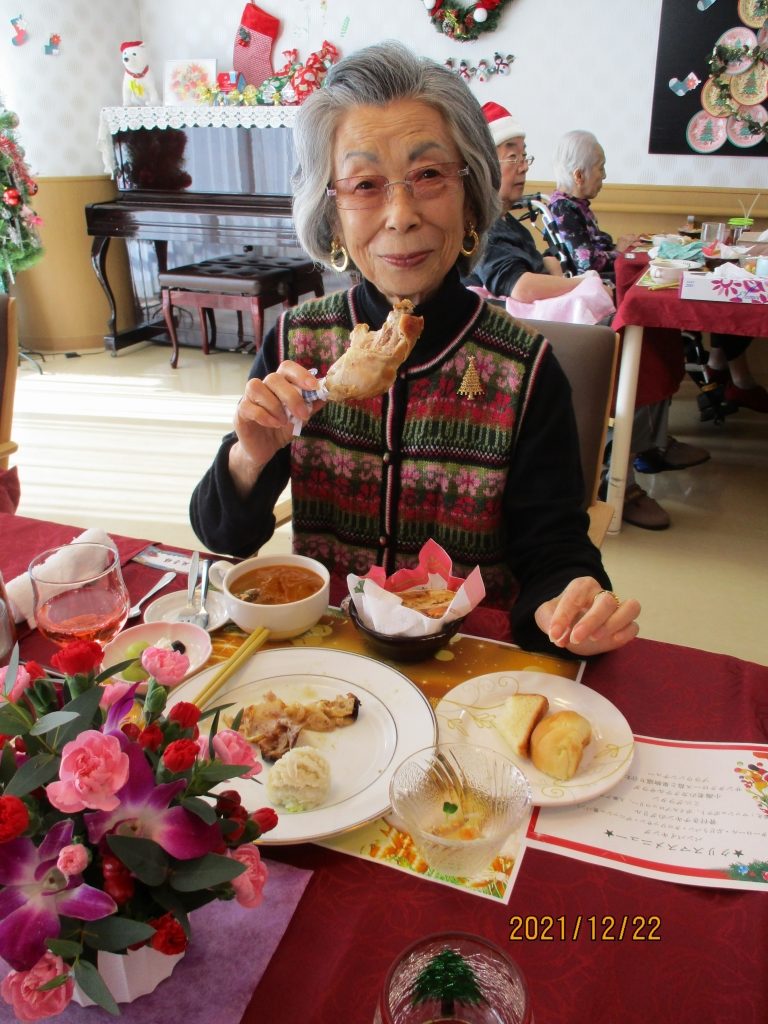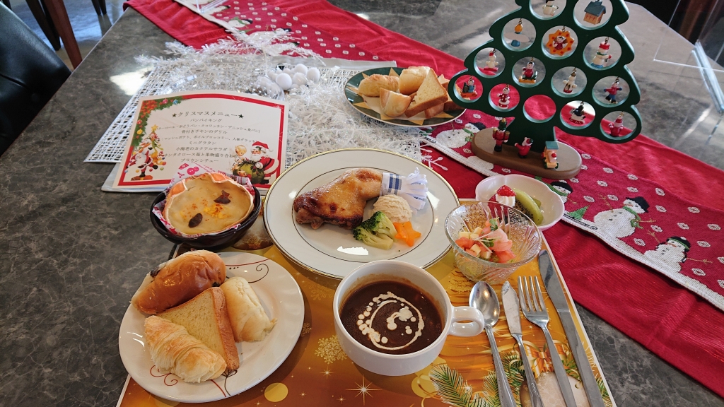 昼食には、クリスマスの定番「チキン」を召し上がって頂きました。