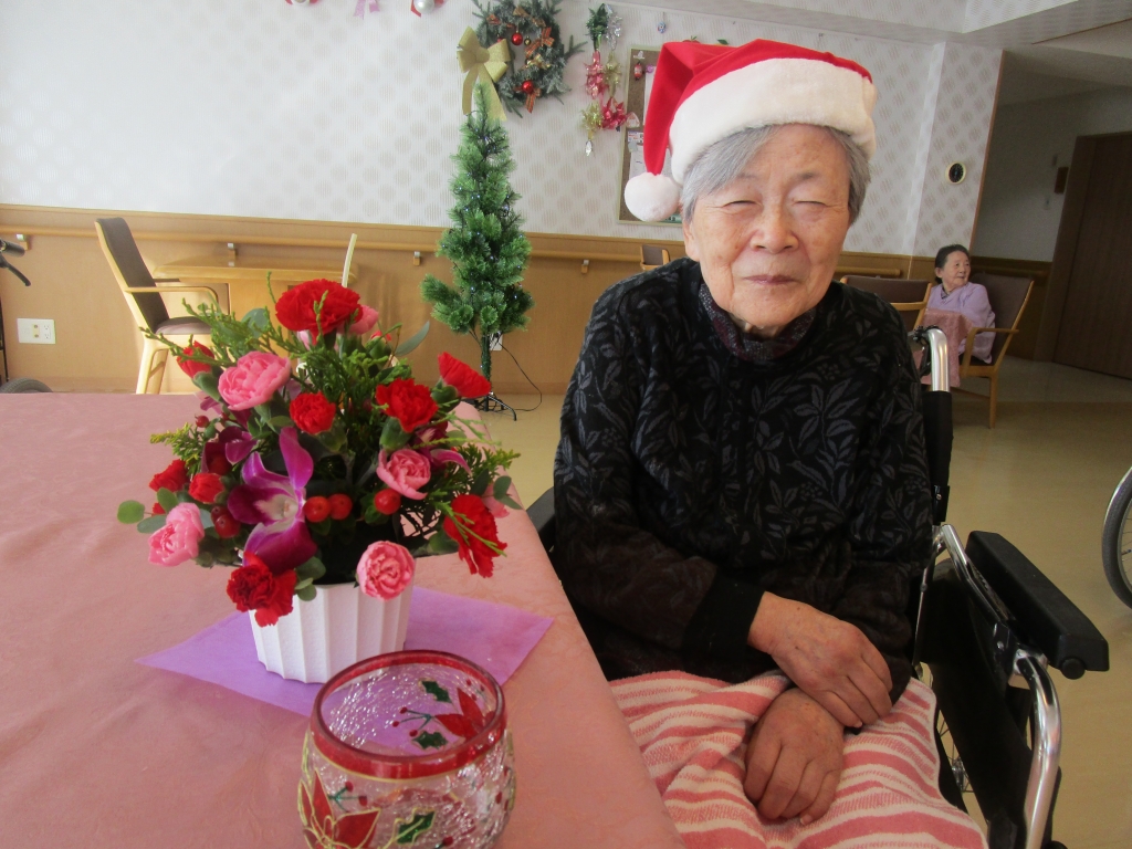 ご入居者の皆様も一緒に、帽子をかぶりクリスマスの楽しい雰囲気です!!