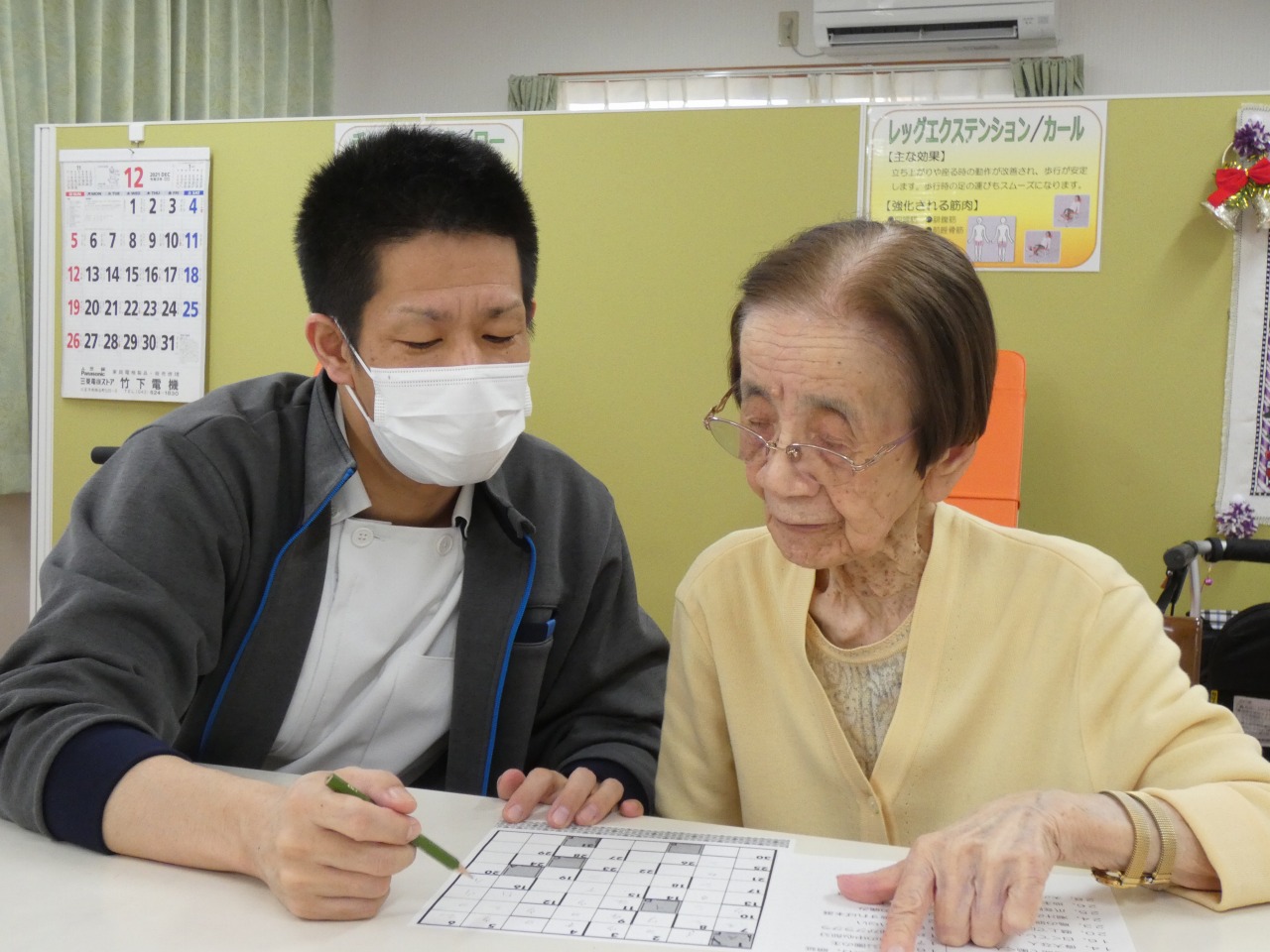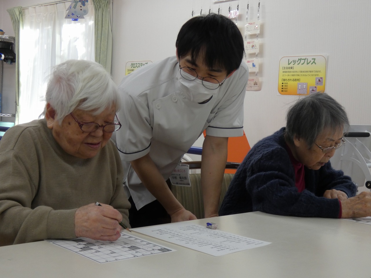 本日は日野リハビリ室にて学習クラブを開催し、クロスワードパズルに挑戦していただきました。